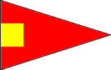 Buchstabe: Q Proportion: 1:1 internationaler Code: quebec deutscher Code: quelle Bedeutung: alles gesund an Bord bei Regatten: Ziel an Bahnmarke |