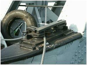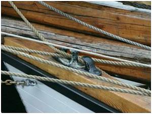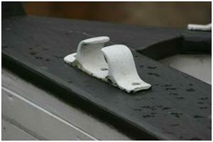 oben offene, innen abgerundete Durchführung für eine Leine nach außenbords (auch: Lippklampe).