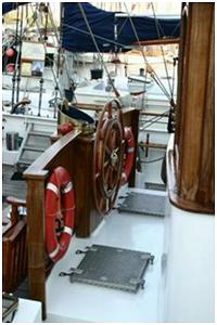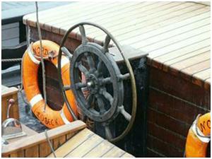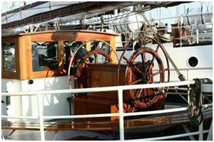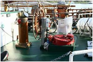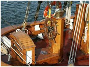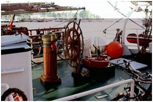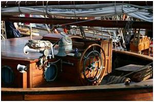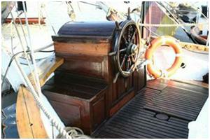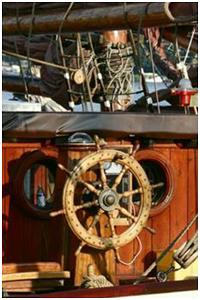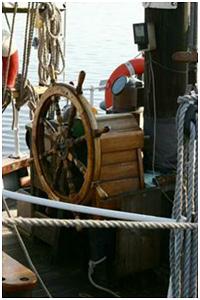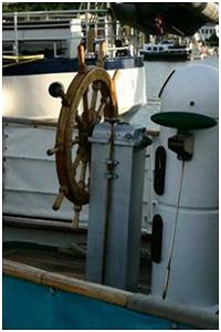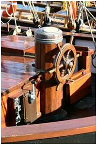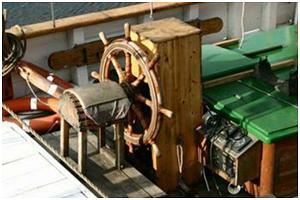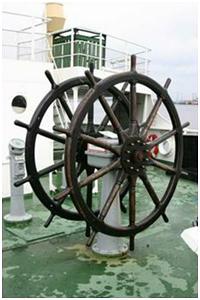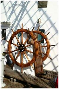 Handrad im Steuerstand oder an einer Steuersäule mit dem das Ruder bedient wird.
