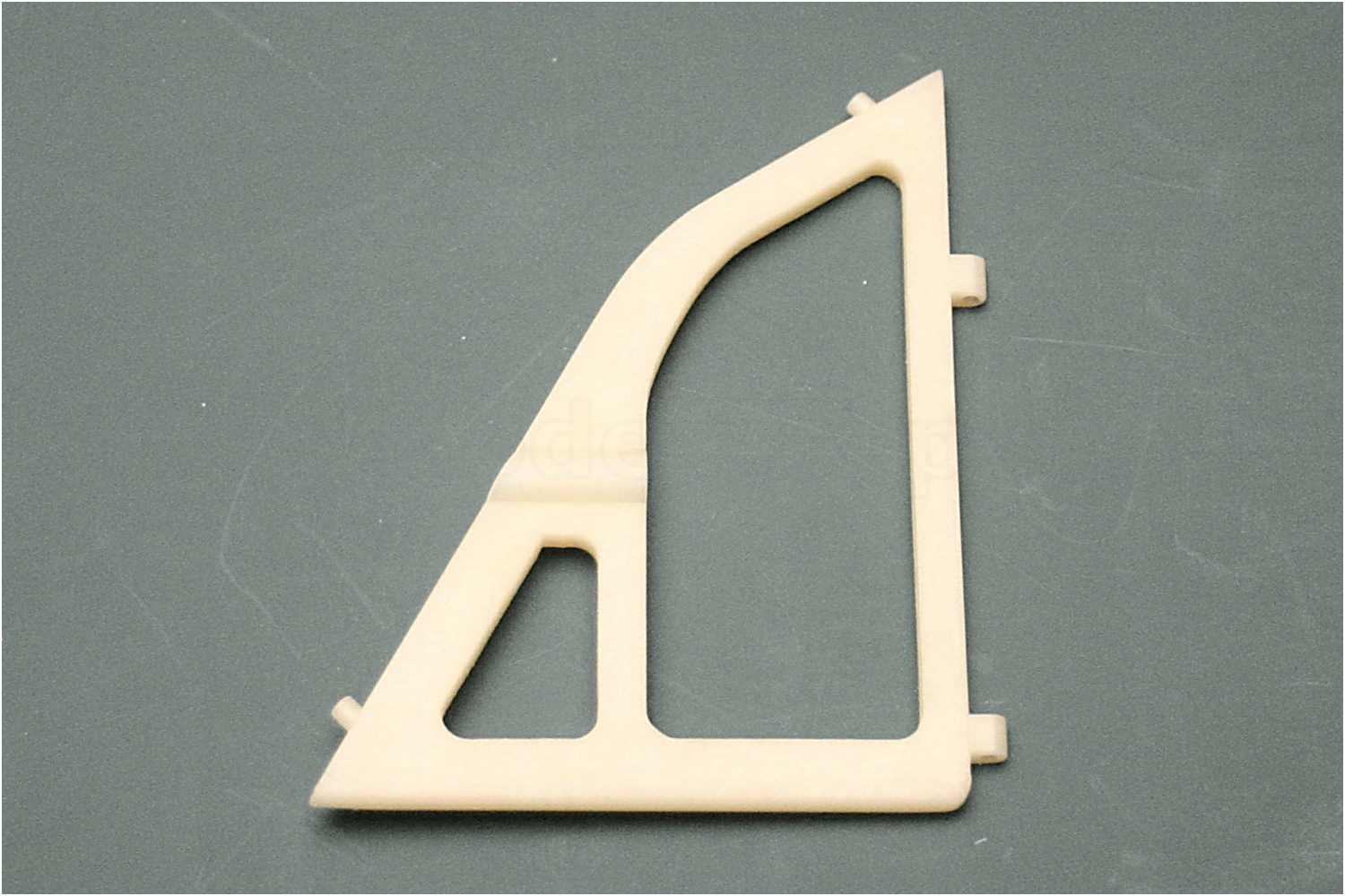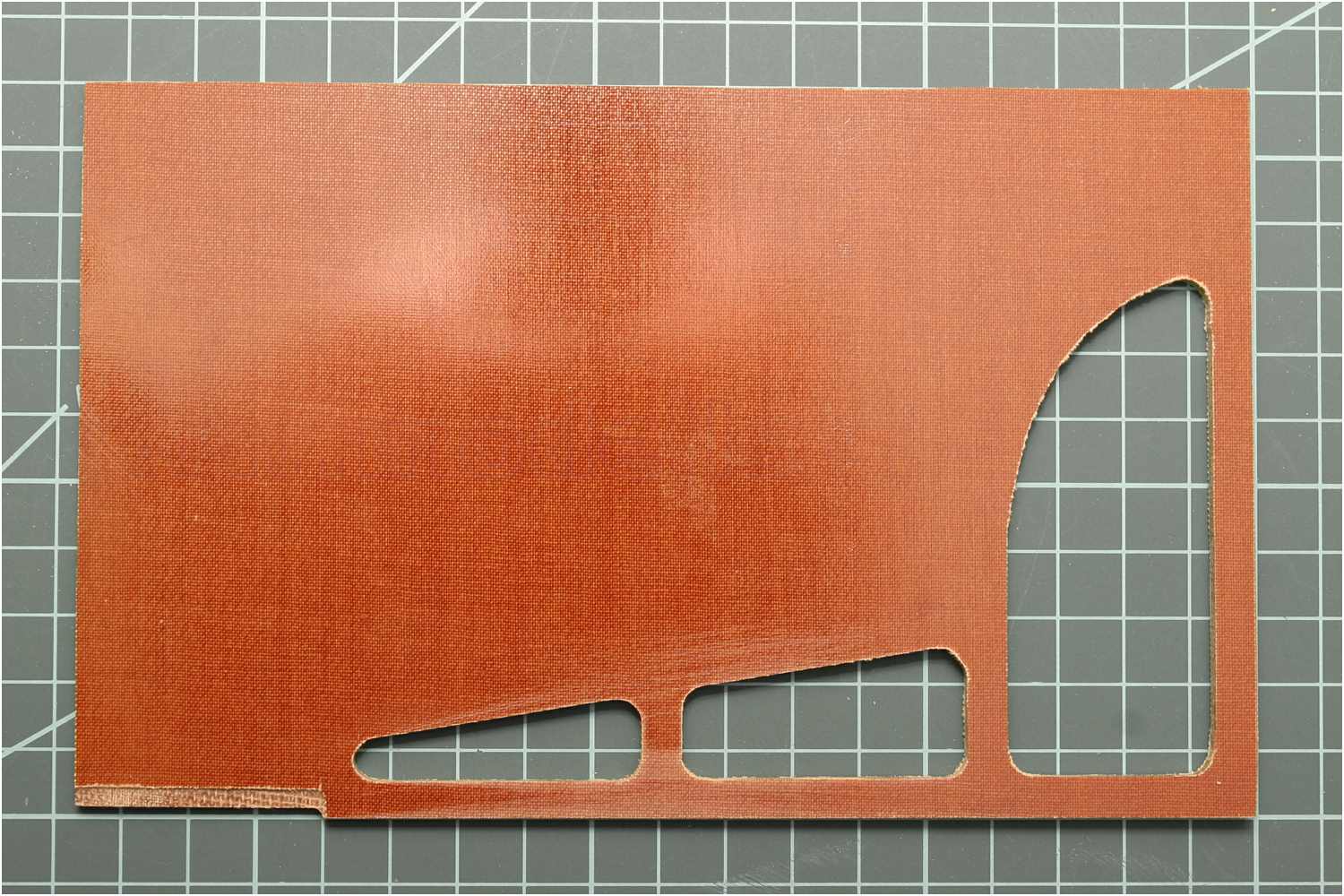 Da dieses Bauteil recht zierlich ist, suchte ich nach einem entsprechend stabilen Material und entschied mich für Phenolhartgewebe auch bekannt unter dem Namen Pertinax. Dieser Werkstoff lässt sich sehr gut sägen, bohren und fräsen, somit war die Herstellung der Durchbrüche kein Problem.