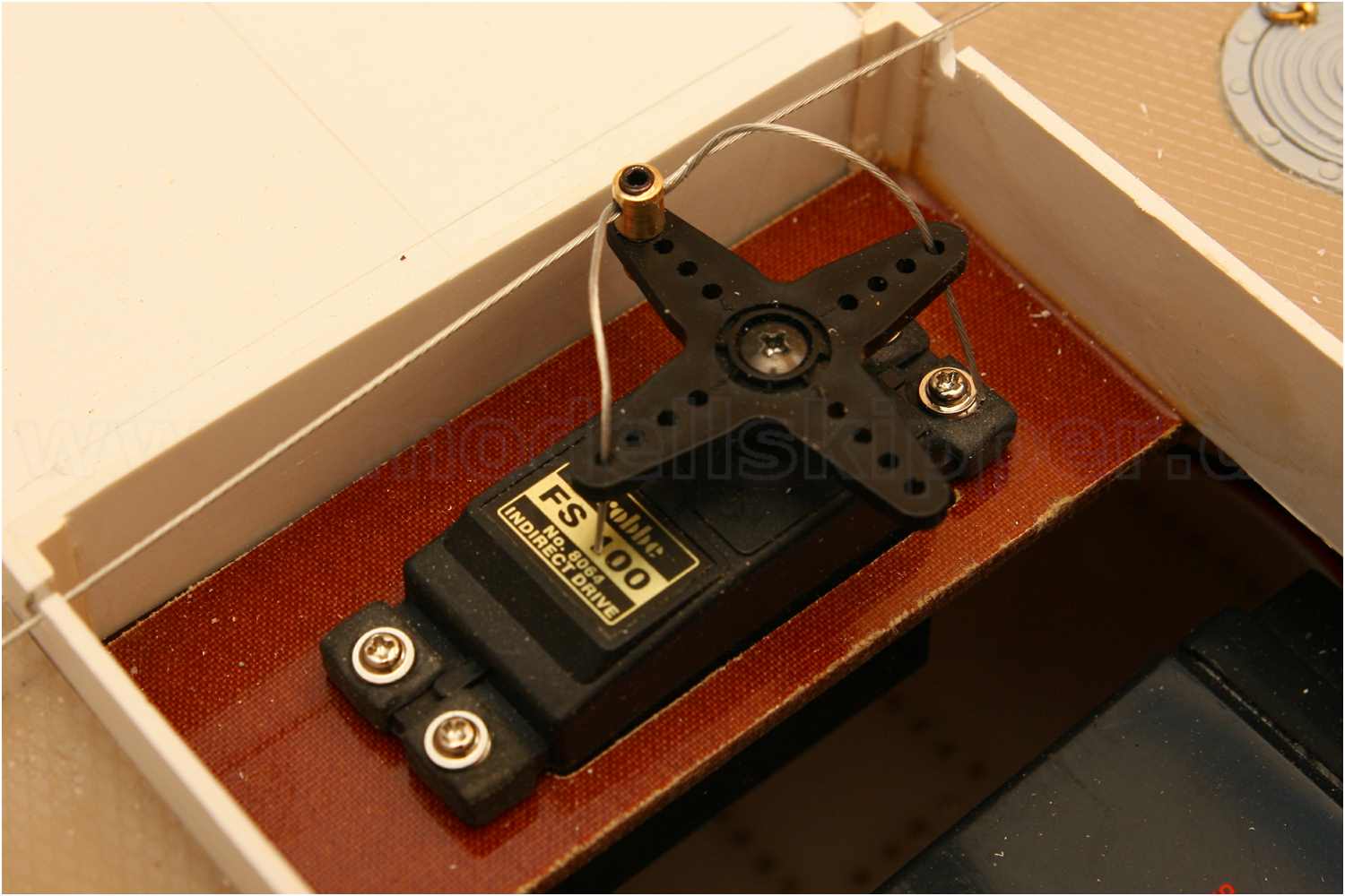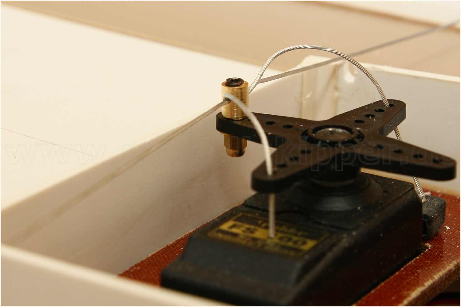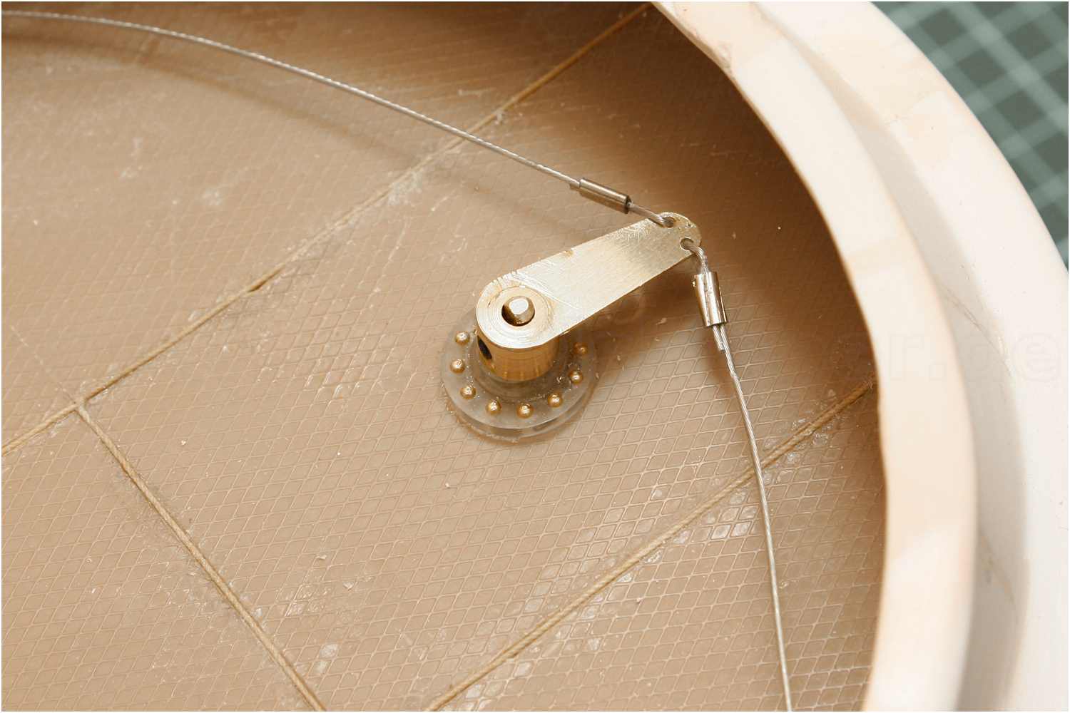 Sowas funktioniert übrigens auch bei einem festen Rudergestänge sehr gut und ich verwende diese Art ganz gern. Wer keine Möglichkeit hat sich solch einen Klemmer selber zu drehen, der kann auch Abstandshalter aus dem Computerzubehör nehmen.