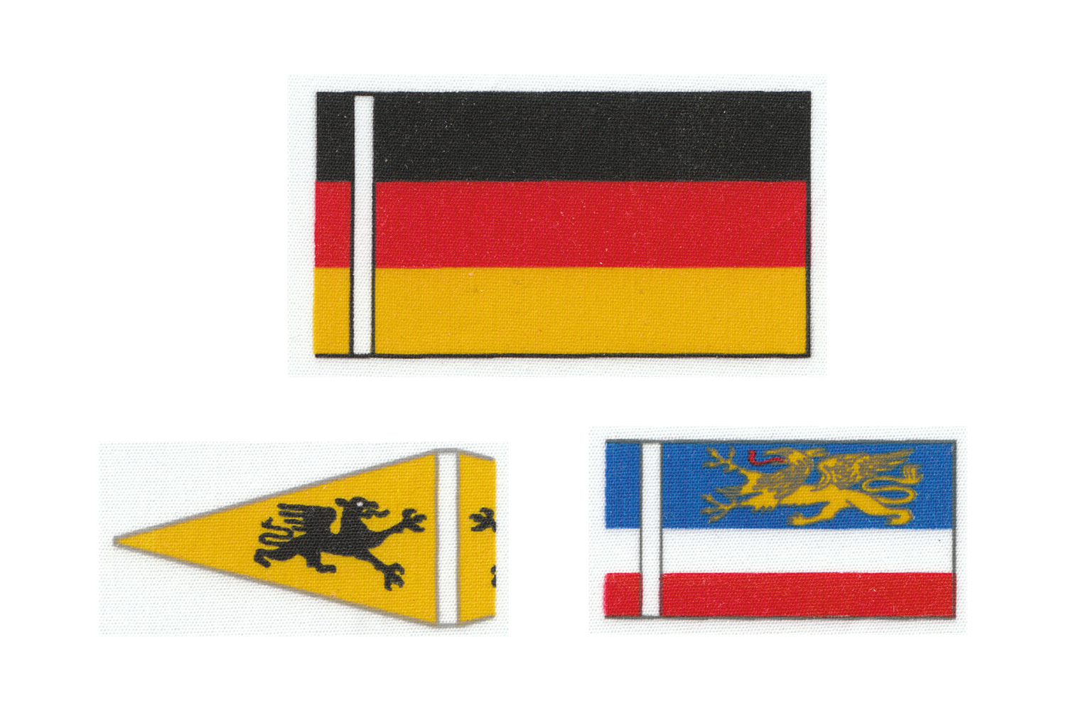 Natürlich soll der Schlepper auch mal ordentlich beflaggt werden. Da es sich nur um einen Typnachbau handelt, werde ich ihn unter deutscher Flagge fahren lassen und am Mast die Flagge des Heimathafens setzen.