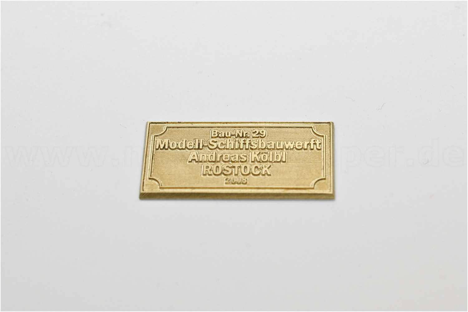 So etwas ließe sich mit einem Laser herstellen, ich musste dann allerdings in erschreckender Weise feststellen, dass der Kostenfaktor für solch eine kleines Schildchen exorbitant hoch sein würde, mit drei Stellen vor dem Komma, da z.B. für Messing nur ganz bestimmte Laser genutzt werden können. Für Kunststoffe wäre es wesentlich kostengünstiger.