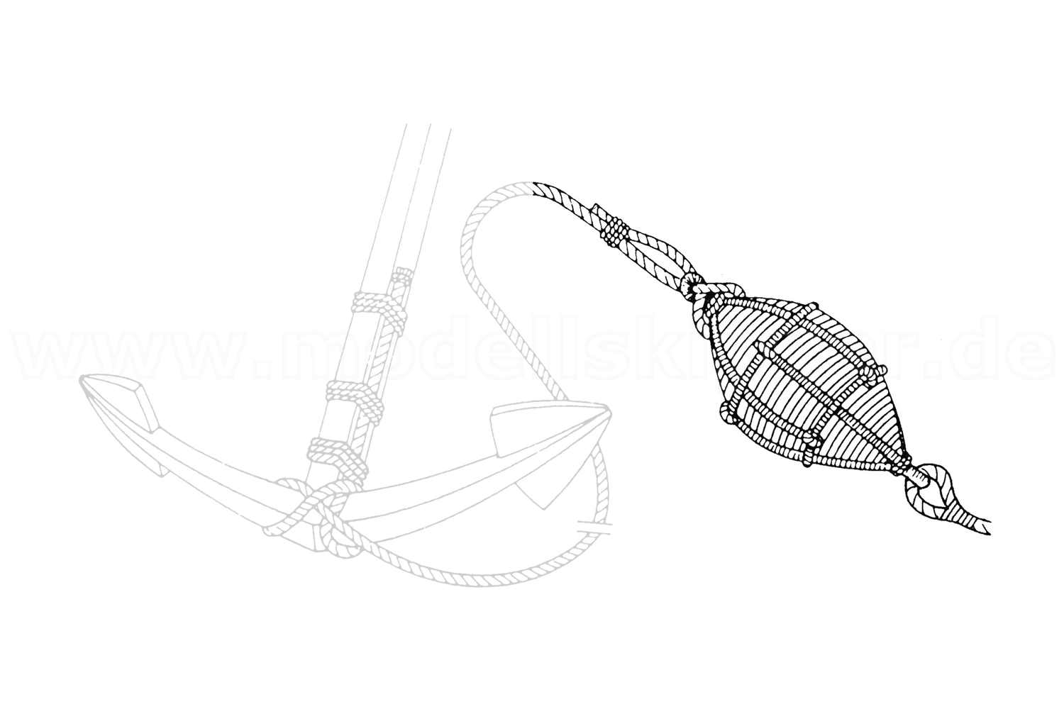 Die Ankerboje mit dem Bojenreep auf der Stb.- und Bb.-Seite am Anker angeschlagen und an den Wanten angebändselt.