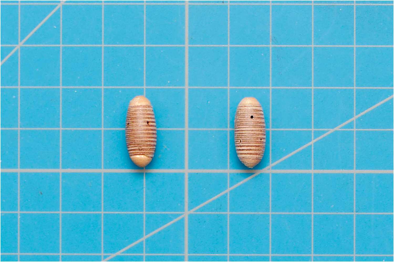 Viele Informationen zur Beschreibung des Bojenkörper sind in meinen Unterlagen nicht zu finden, jedoch diverse Zeichnungen lassen vermuten, dass der Korpus aus einzelnen Holzscheiben zusammengesetzt wurde.