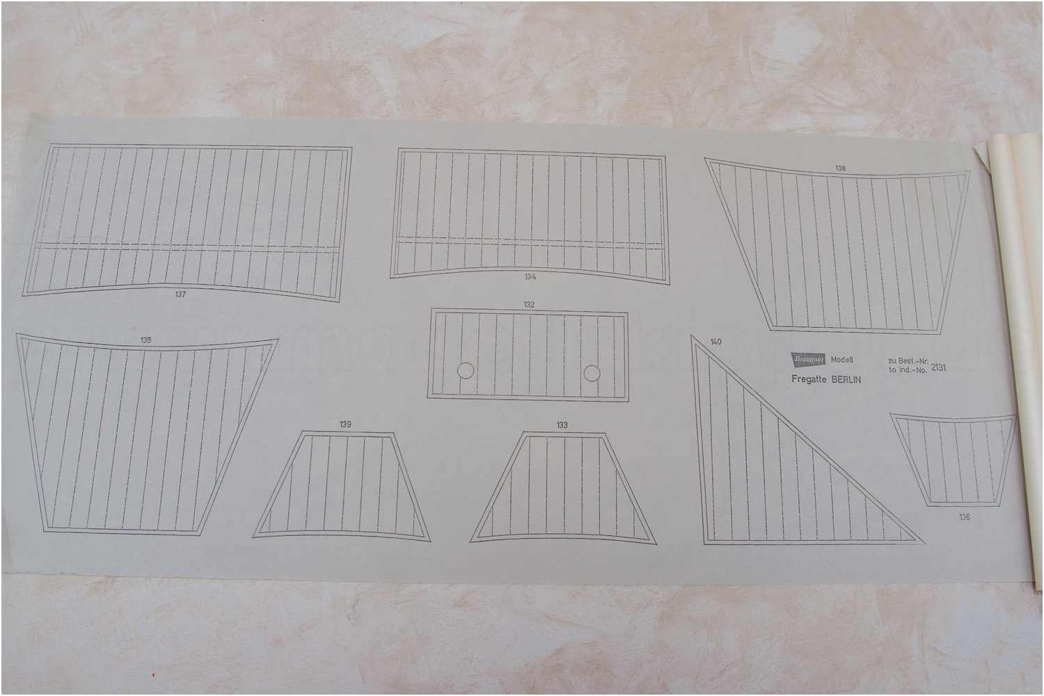 Das Holzsortiment ist extrem mager, eine Beplankung ist nicht vorgesehen, das Modell soll nur lackiert werden, auf den Decks sind die Plankengänge gedruckt.