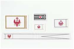 Die Papierflaggen werden natürlich ersetzt. Für gute Stoffflaggen war Herr Blissenbach schon immer der richtige Ansprechpartner, seinen Katalog findet man auf www.schiffsmodellflaggen.de - hier noch in unbearbeitetem Zustand.