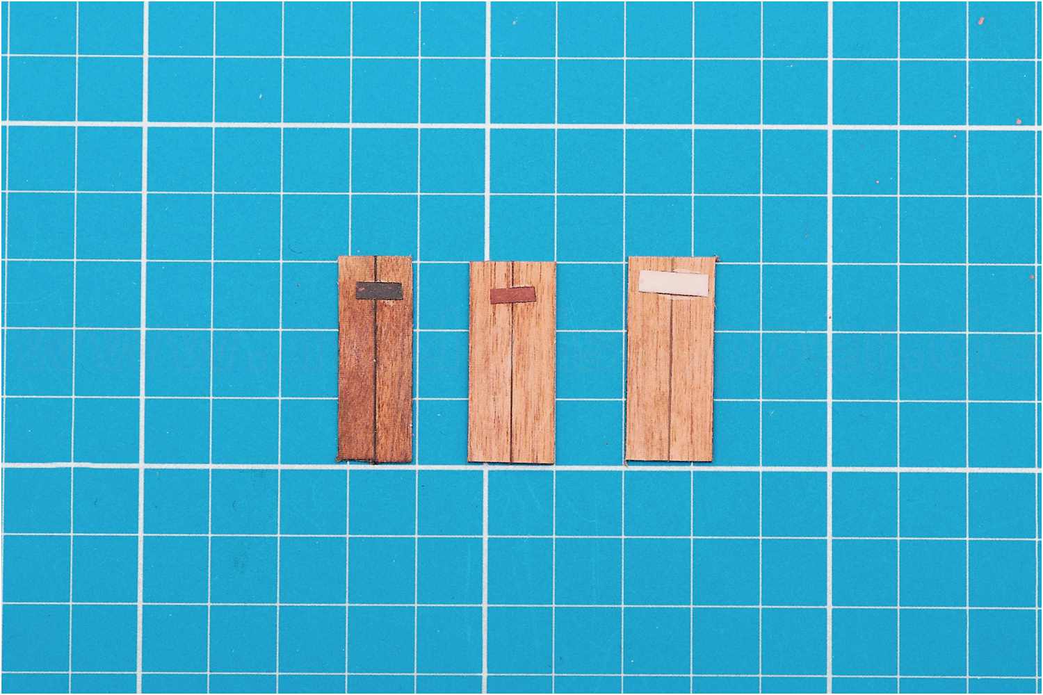 Mit der grauen Pappe erhielt ich nach dem Feuchtschliff mit Firnis den gewünschten Effekt und mit einer Blattstärke von 180 g/m² eine maßstäbliche Fugenbreite von 0,2 mm.