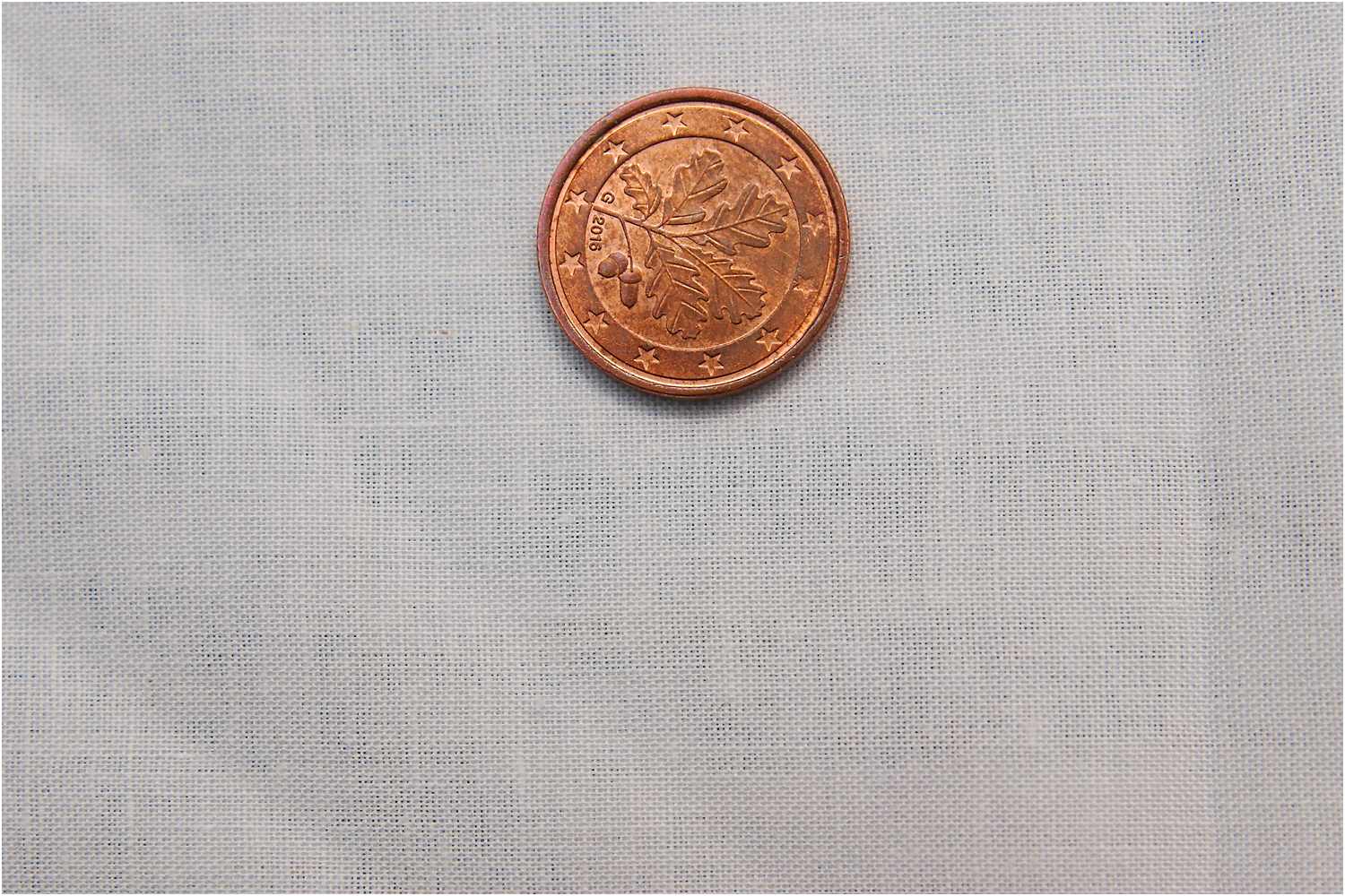 Um eine maßstäbliche "Verträglichkeit" zu prüfen, kann man auf den Stoff einen Cent gelegt, um die Anzahl der Fäden zu zählen.