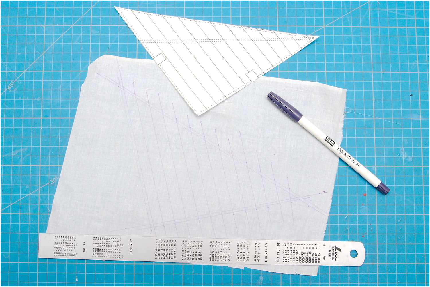 Die Papierschablonen schneide ich aus und übertrage den Segelriss auf den Stoff. Dazu verwende ich einen Wäschestift, ein Filzschreiber der Fa. Prym mit der Bezeichnung "Trickmarker", zeichne ich die Markierungen auf den Stoff.