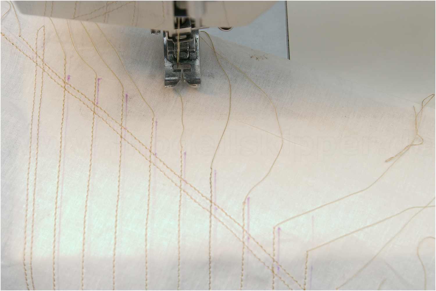 Der Stoff wurde dann immer komplett entnommen und neu beginnend in derselben Richtung genäht.