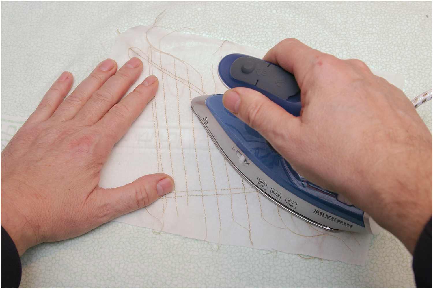 Nach dem Aufbringen der Nähte wird der Kleister ausgewaschen und der Stoff gebügelt.