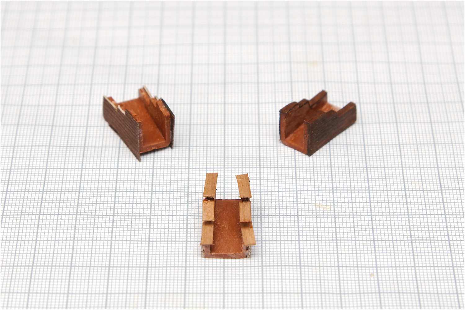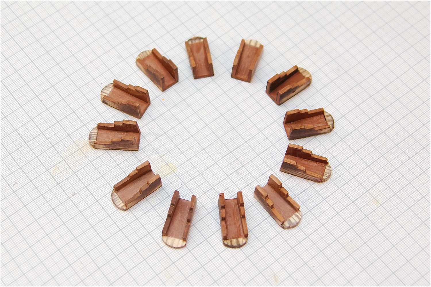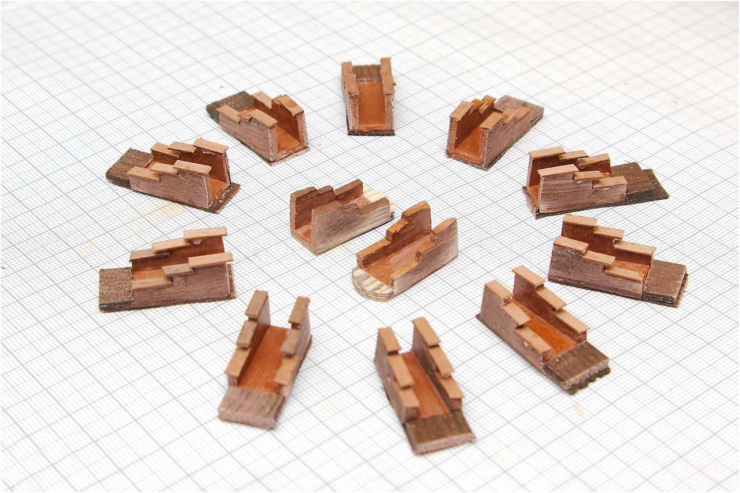 Die Grundkörper der Lafetten für die 12 Hauptgeschütze - noch ungebeizt - sind für die weitere Detaillierung fertiggestellt.