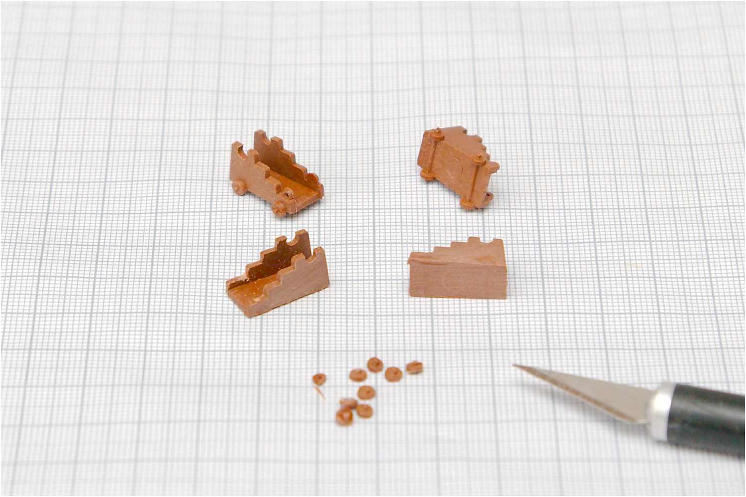 Was machen? Hätte ich zu diesem Zeitpunkt eine Fräse, wäre es gar kein Problem. Also ging ich ganz pragmatisch mit der Idee an die Sache, die originalen Kunststoffteile zu verwenden. Bei Sichtung der Pläne sprach auch nichts dagegen, Form und Größe stimmten.