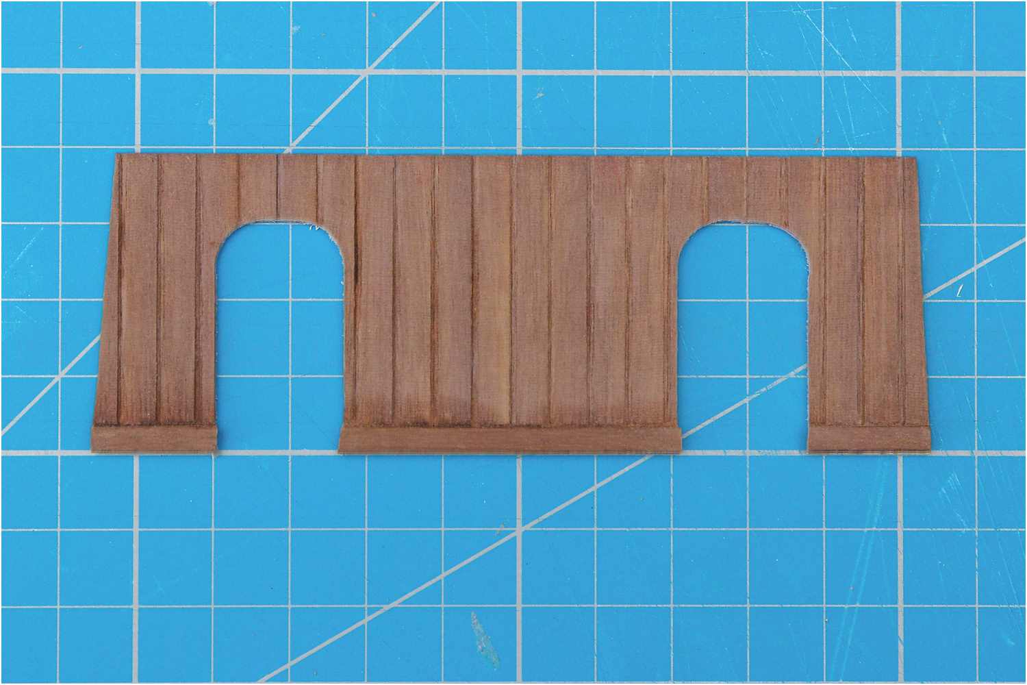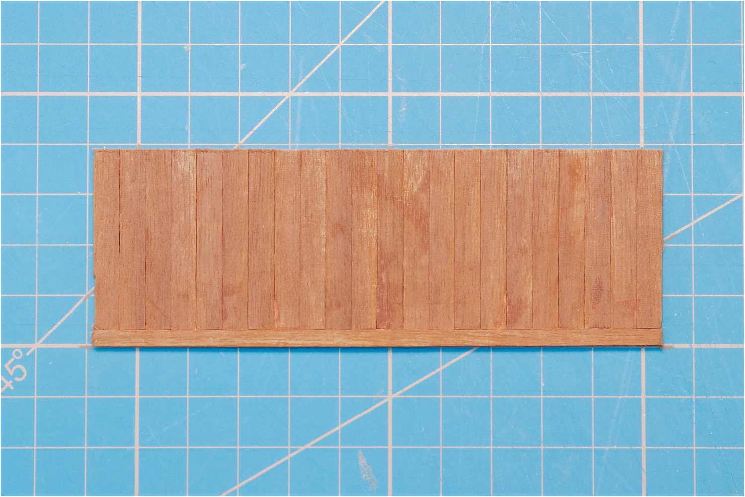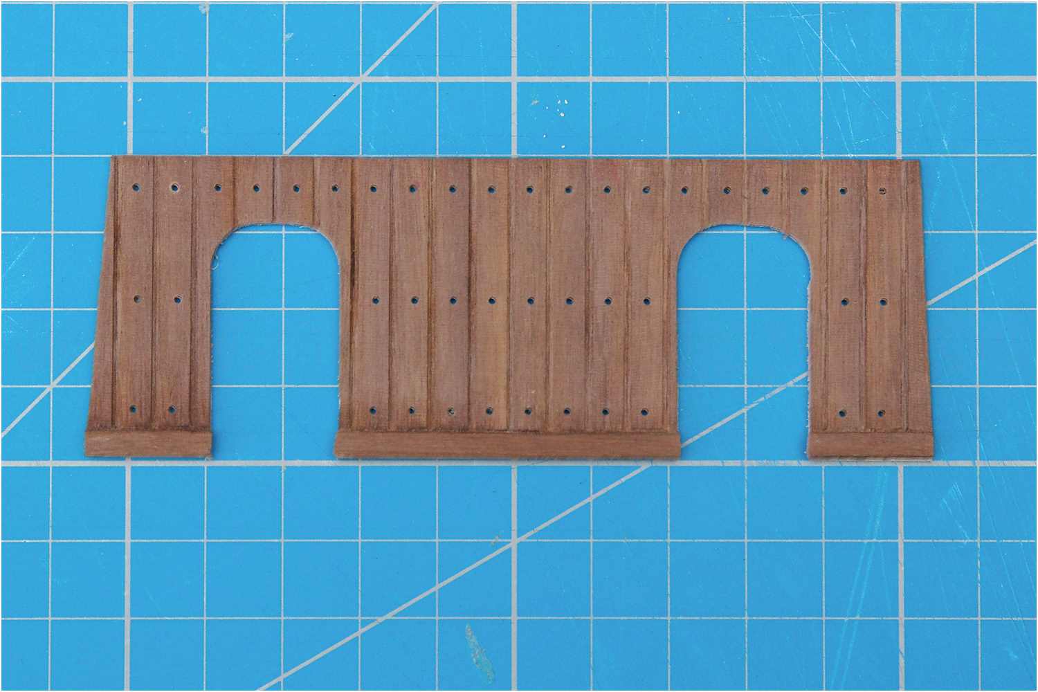 Damit das Schott nicht so glatt wirkt und um einen schönen 3D-Effekt zu erhalten, habe ich an den Stoßkanten eine dünne Fuge eingearbeitet und so eine Art Spundbrett-Effekt erreicht.