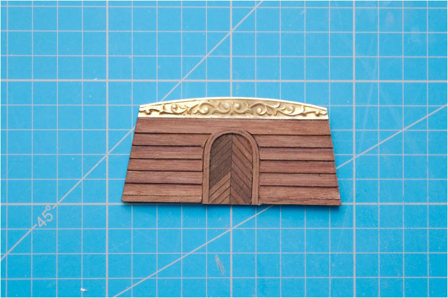 Den oberen Abschluss bildet eine Zierleiste, die zu einem späteren Zeitpunkt noch lackiert wird. Die Öffnung für die Tür wurde eingearbeitet.