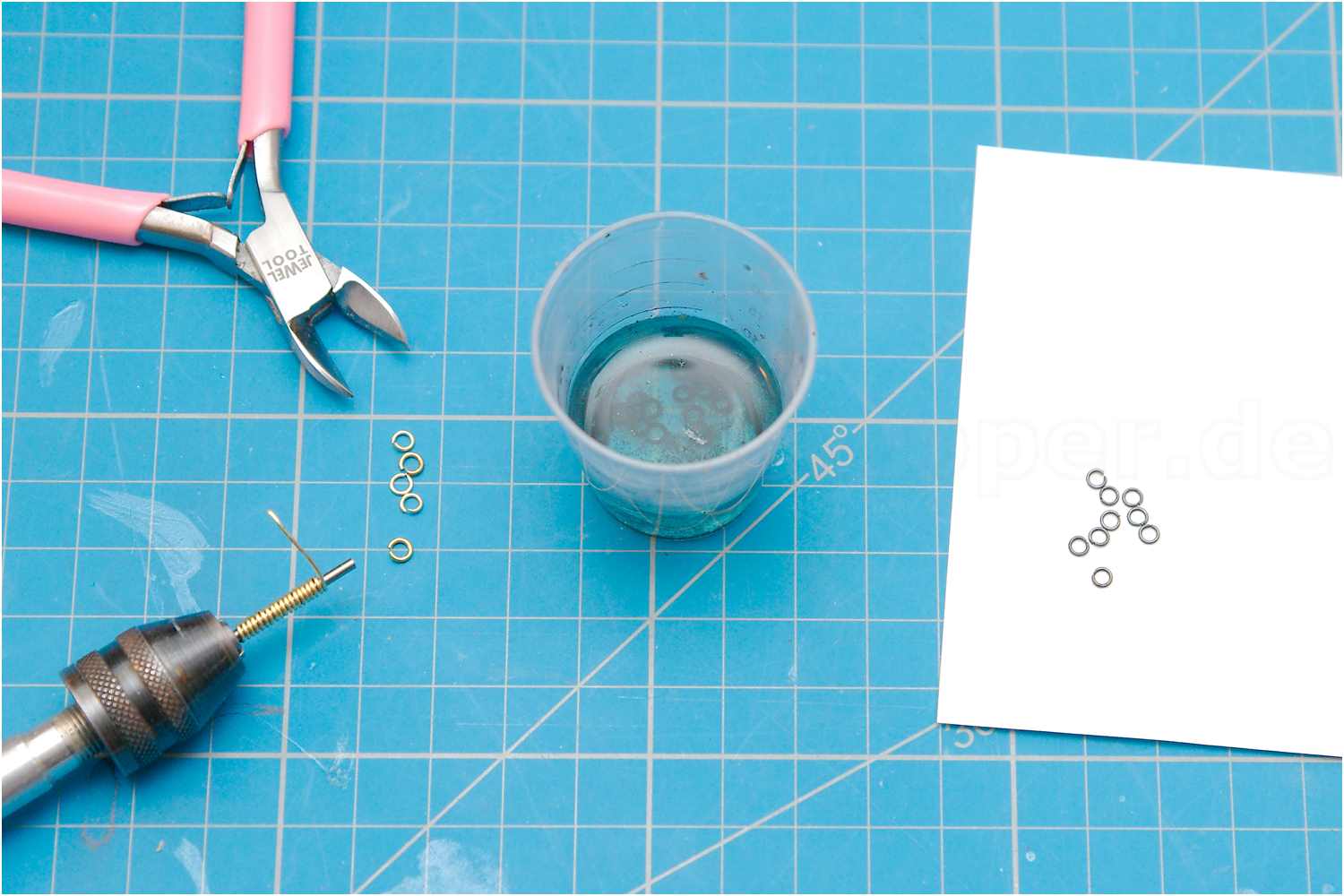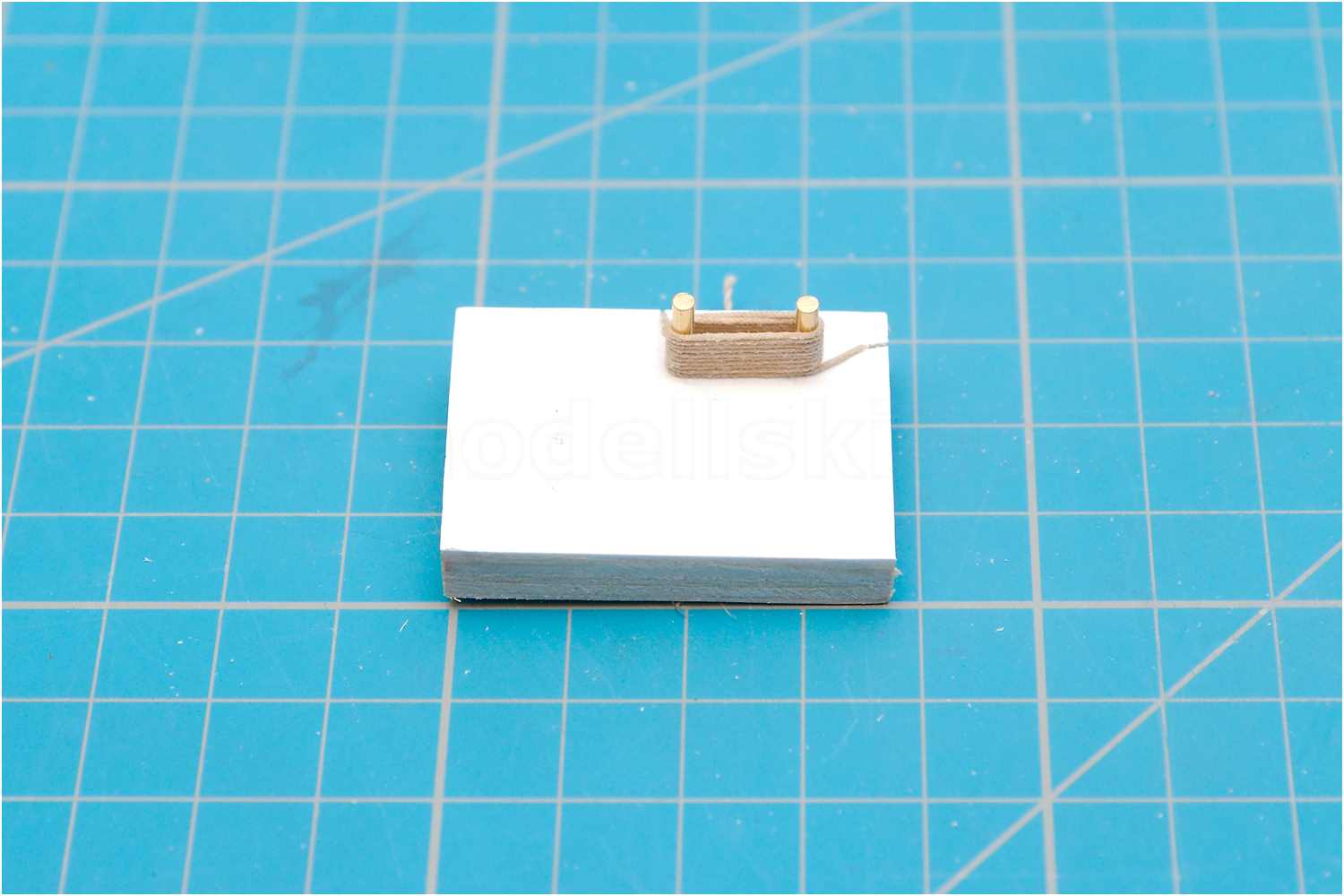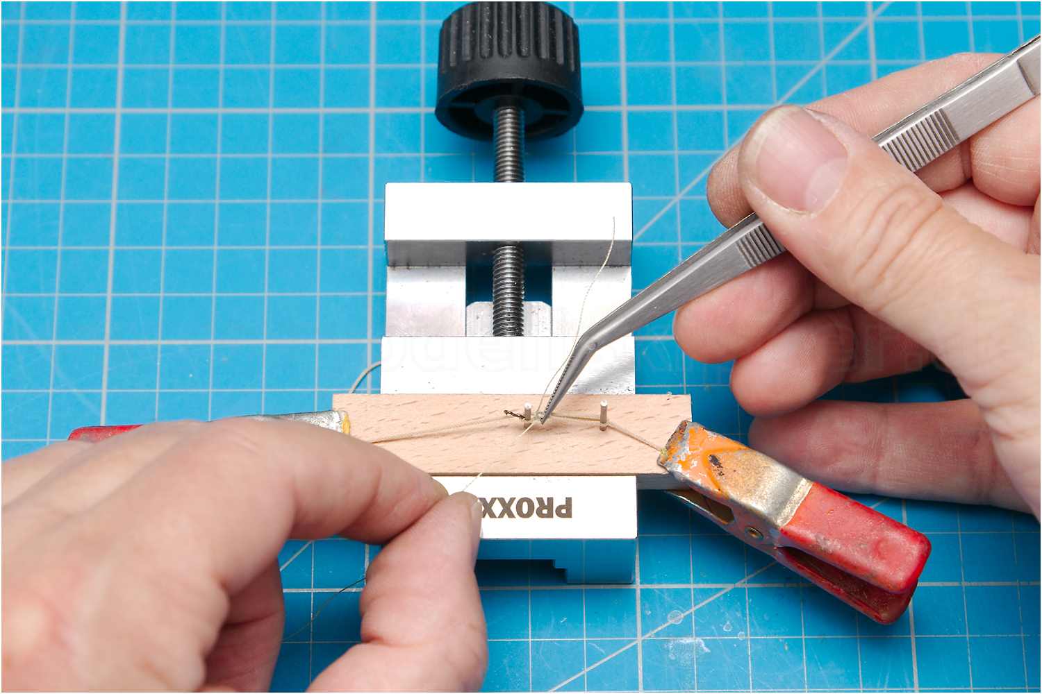 Dort klemme ich ein Ende das Taus ein, wickle es um die Messingstifte und tränke es mit Ballenmattierung.