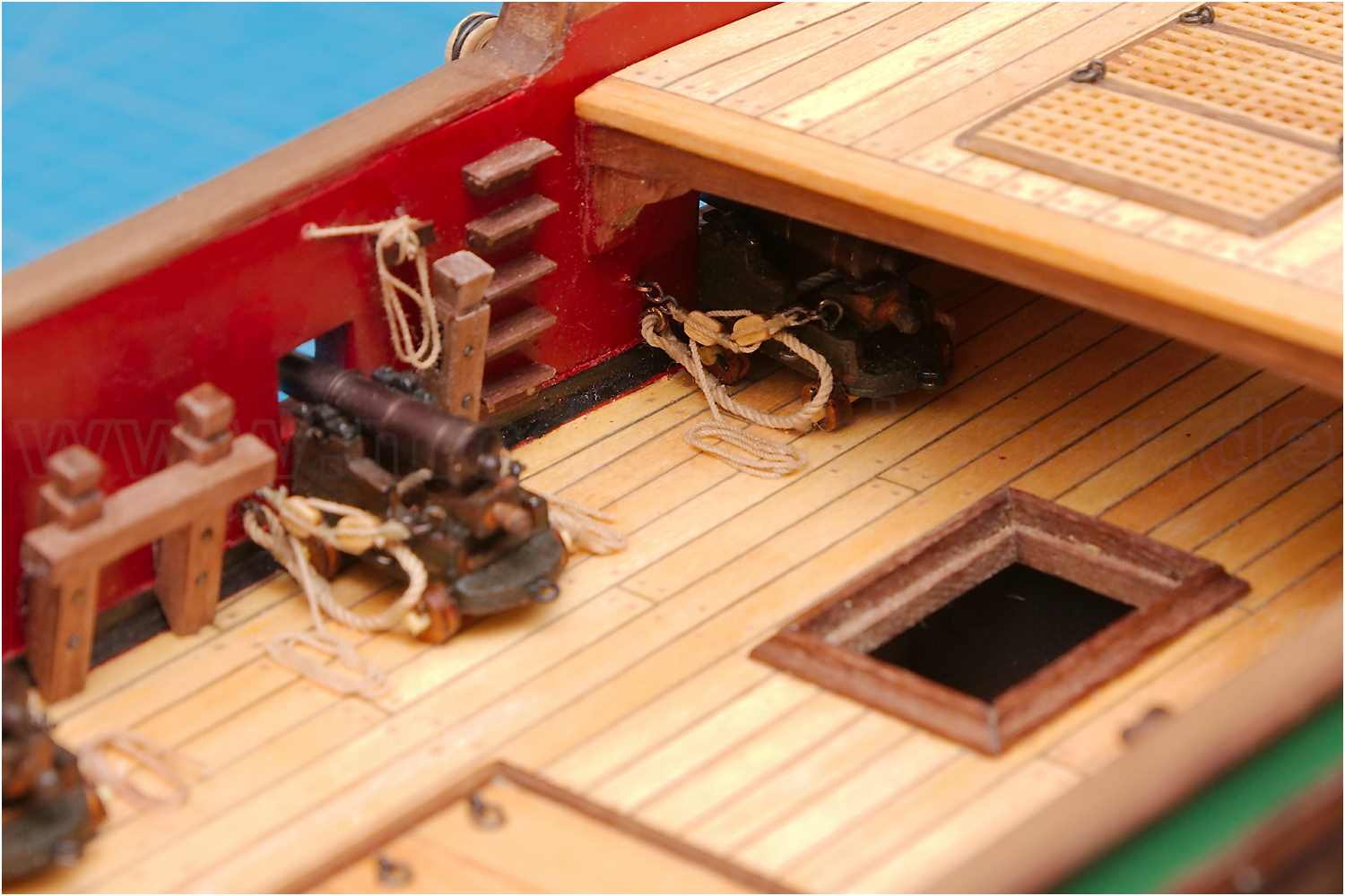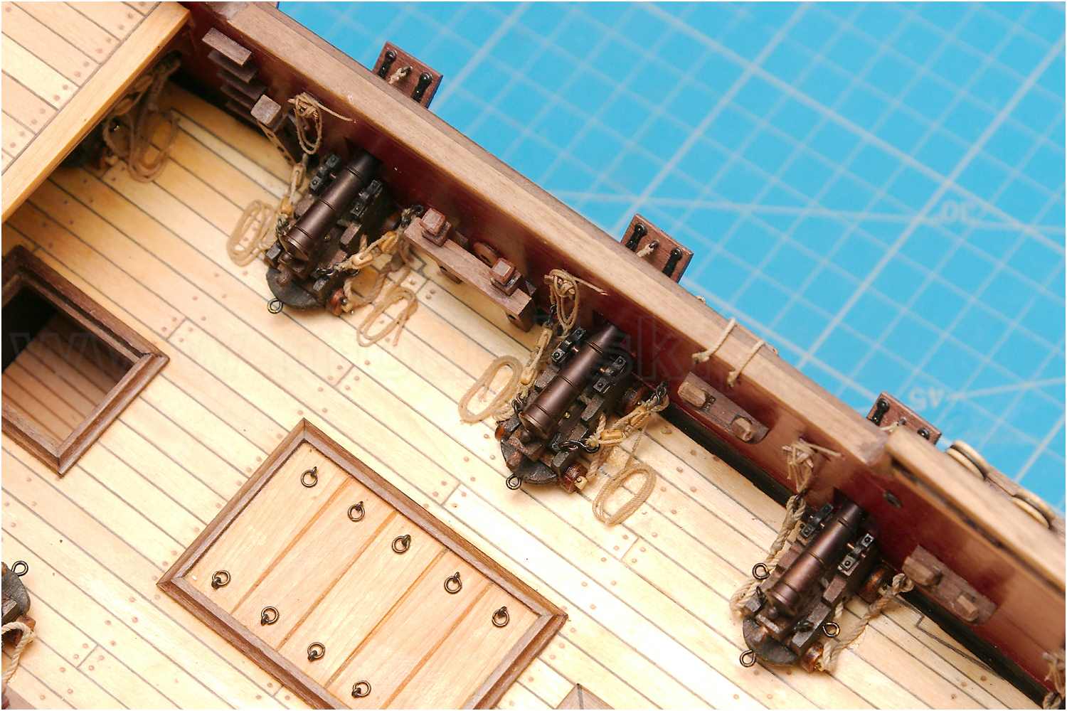 Das Aufstellen und Takeln der Kanonen waren mit etwa 38 Baustunden recht zeitintensiv, es hat jedoch sehr viel Freude bereitet diesen Bauabschnitt wachsen zu sehen.