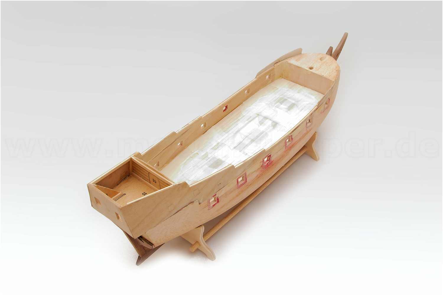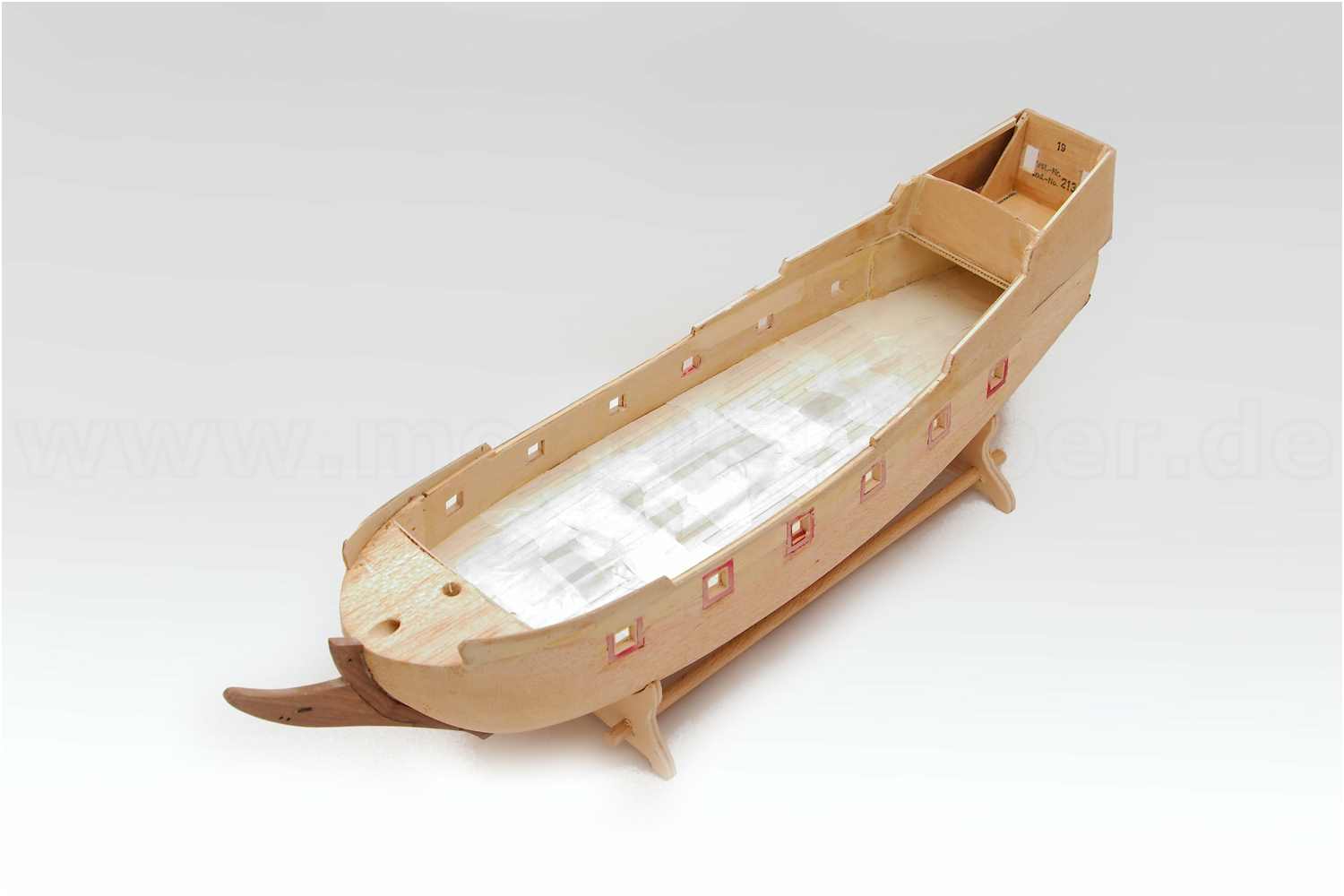 173 Std.: Kiellegung, Stückpforten und Schanzkleid verklebt