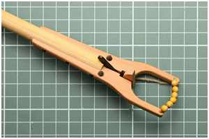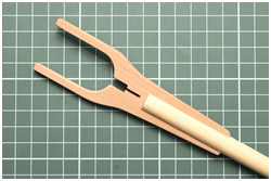Das Hohlverkleben bringt nicht nur Stabilität und Verwindungssteifheit, sondern auch Gewichtsvorteile. Ein vergleichbares Rund-Vollholz wiegt 75 Gramm, die Gaffel lediglich 31 Gramm.