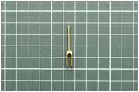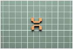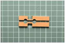 Die Klaufallzunge ist aus einem massiven Stück Messing gefräst. Sie hat im oberen Teil ein Auge zum Anschäkeln des Gaffelfallblocks und unten ein Gatt (Gabel) zur Befestigung des Klauhorns vom Segel.