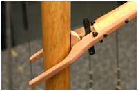 Beide Teile sind beweglich auf einem Messingbolzen gelagert, um den Aufstellwinkel der Gaffel ausgleichen zu können.