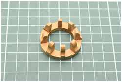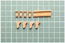 Ein Ring aus Vollholz wird von insgesamt 8 Stützen gehalten. Für diese Stützen wurde eine Vierkantleiste mit einem Konturfräser in Form gebracht und in Scheiben geschnitten.