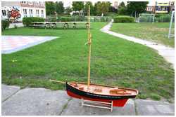 Aber auch dies wurde wieder repariert und dann endlich konnte der Mast gesetzt werden. Vom Boden bis zum Topp ca. 1,70 m