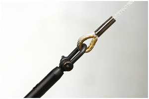 Nahaufnahmen vom Klüverstag: Spannschraube und Schäkel sehen sehr realistisch aus. Das Stag hat natürlich auch eine Kausch, die Klemmhülse ist aus dem Anglerbedarf.