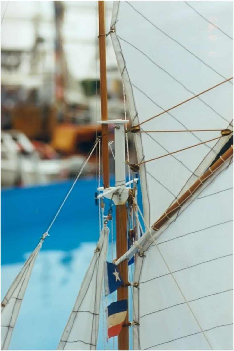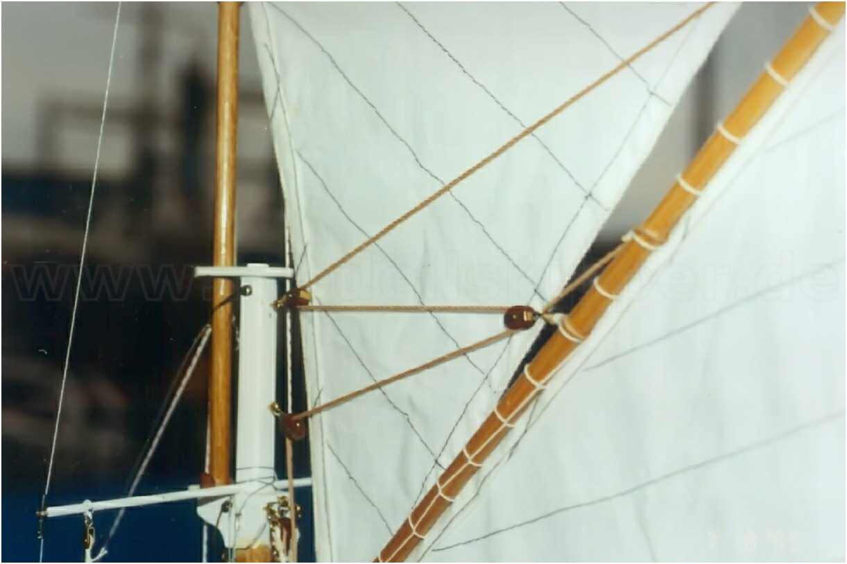 Die Segel des Modells werden über zwei, unter Deck eingebaute Segelwinden gesteuert, wobei die beiden vorderen baumlosen Segel wie beim Original ''übergeholt'' werden können. Die Segelfläche von ca. 60 dm² ist fast zu viel des Guten, wird aber je nach Windstärke angepasst. Das Top-Segel kann komplett gerefft und die Fläche des Großsegels um 25 % verkleinert oder komplett niedergeholt werden. Auch das Fock- und Klüversegel können gerefft werden.