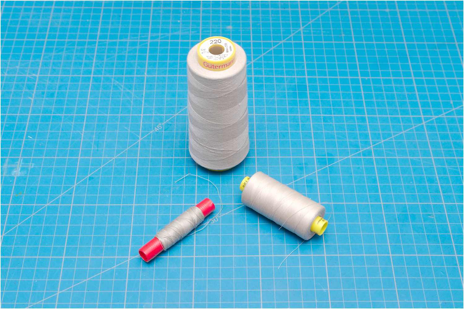 Es ist zu bemerken, dass die Angaben zur Garnstärke beim Baumwollgarn Aurifil nicht mit den Angaben der Polyestergarne von Gütermann und Alterfil vergleichbar sind.
