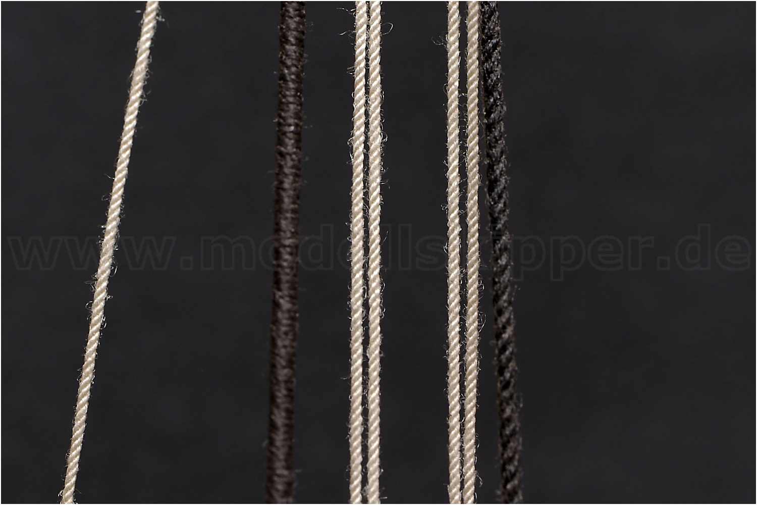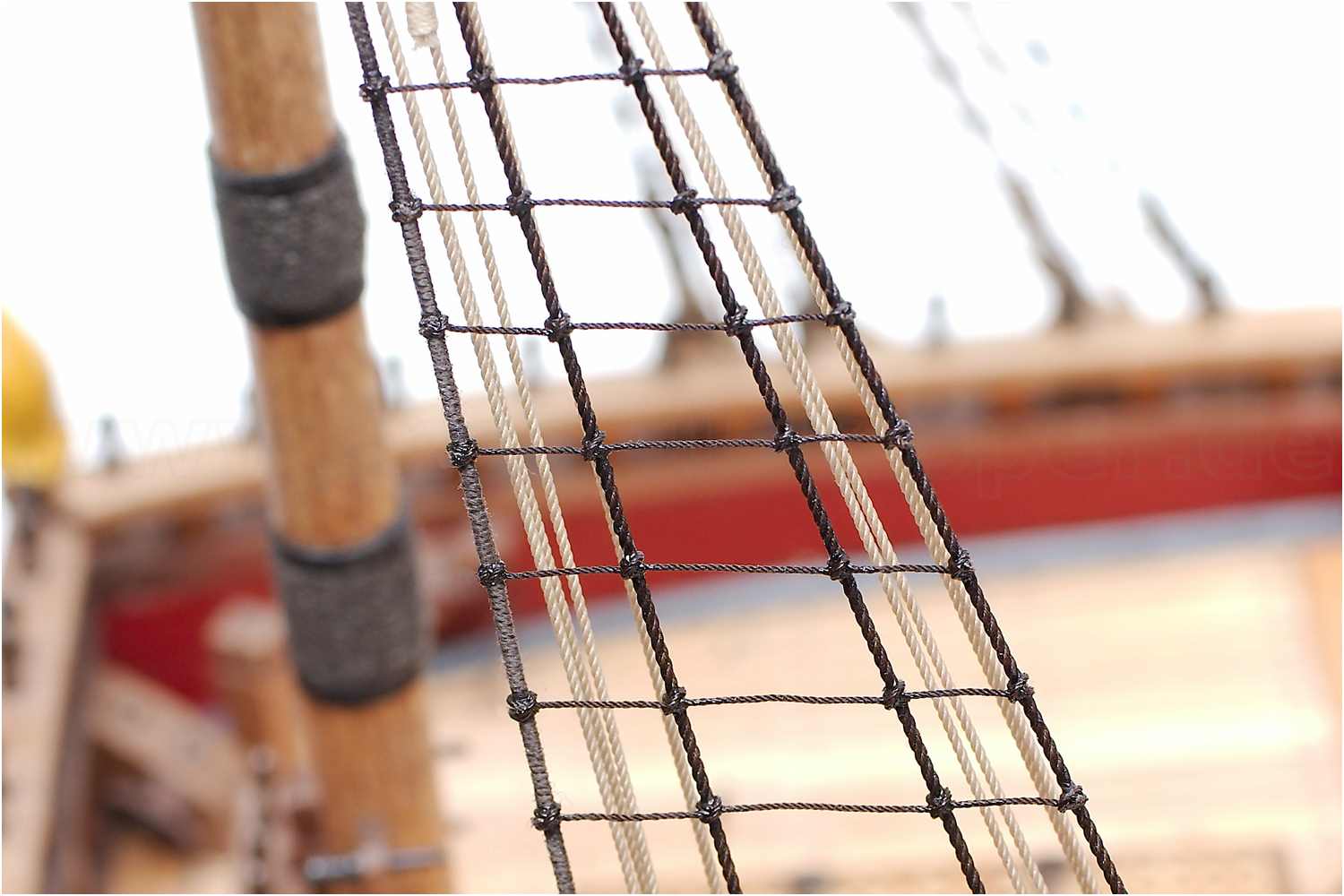 Fusselfreie Taue haben nicht nur bei vergrößerten Makro-Aufnahmen, sondern auch bei normalem Betrachtungsabstand den Vorteil, dass bei dünnen Tauen, wie z.B. den Webeleinen, die typische Seilstruktur auch ohne Vergrößerung gut zu erkennen ist.