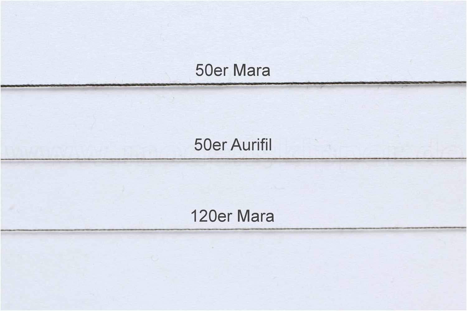 Zu beachten sind die Anzahl der Einzelfäden, mit denen ein Garn hergestellt wurde. Das 2-fädrige 50er Aurifil (Baumwolle) im Vergleich zum 3-fädrigen 50er Mara (Polyester) entspricht eher einem 2-fädrigen 120er Mara (Polyester).