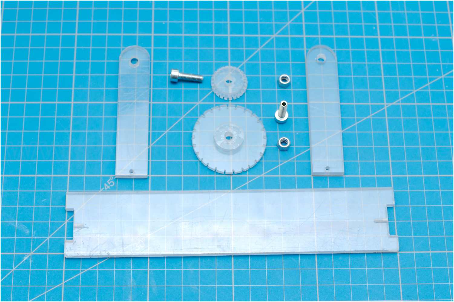 Grundplatte, Stützen, Scheiben und Klampen wurden aus Plexiglas gefertigt.