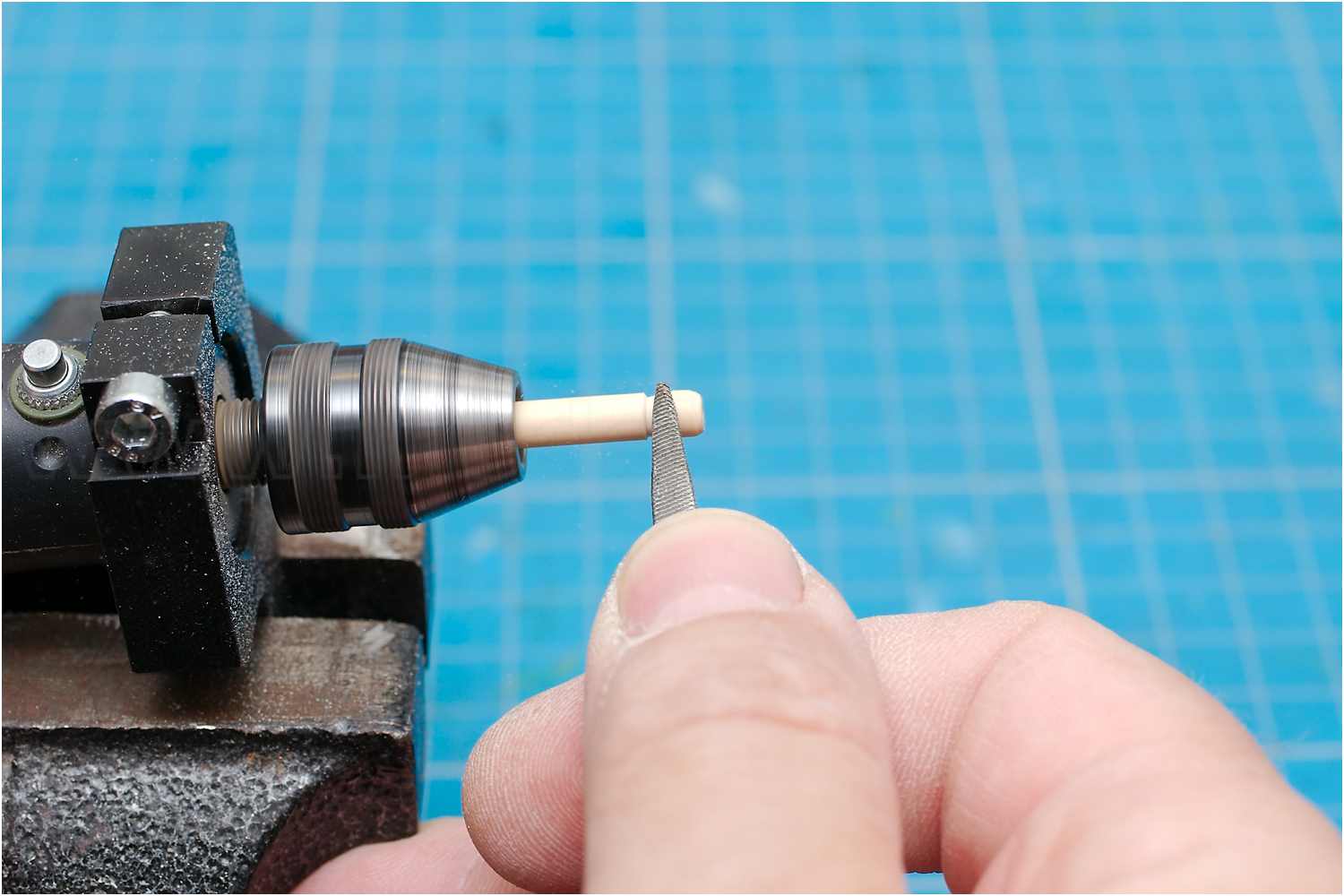 Dies braucht erheblich Geduld, um so mehr, je kleiner die Stagmaus werden soll, deshalb habe ich mir nach einer Anregung aus dem Netz eine Vorrichtung gebaut, die diese Arbeit vereinfachen soll.
