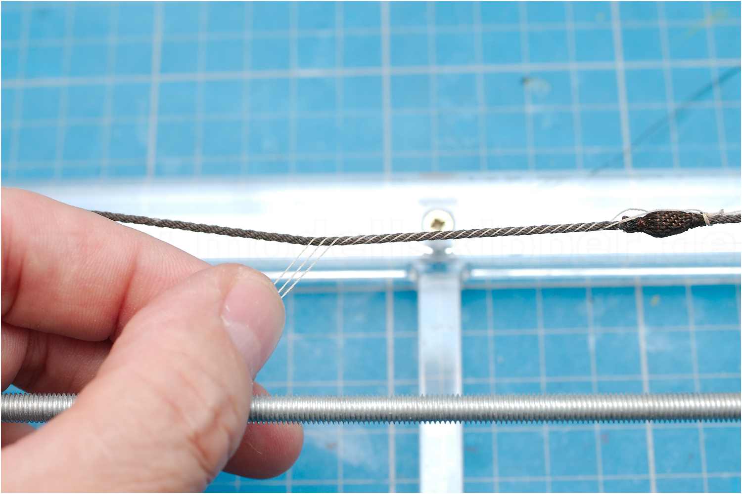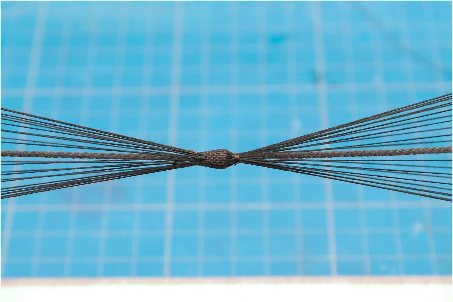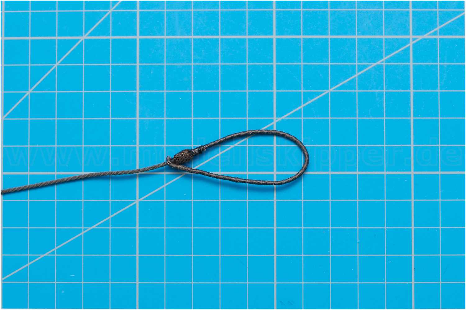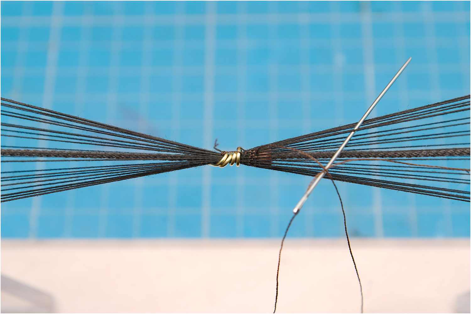 Die Kettfäden wurden abgeschnitten, das Tau getrenst, am Ende ein Auge geformt und abschließend bis zur Maus bekleidet.
