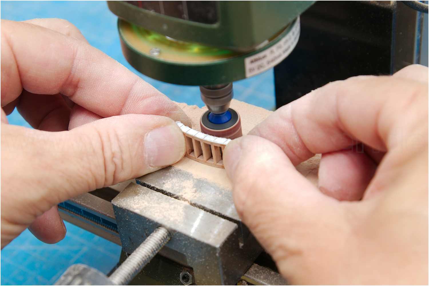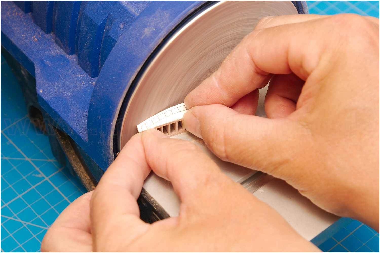 Dann wurde der Außenbogen am Tellerschleifer und der innere Bogen an einem Rundschleifkörper geschliffen.