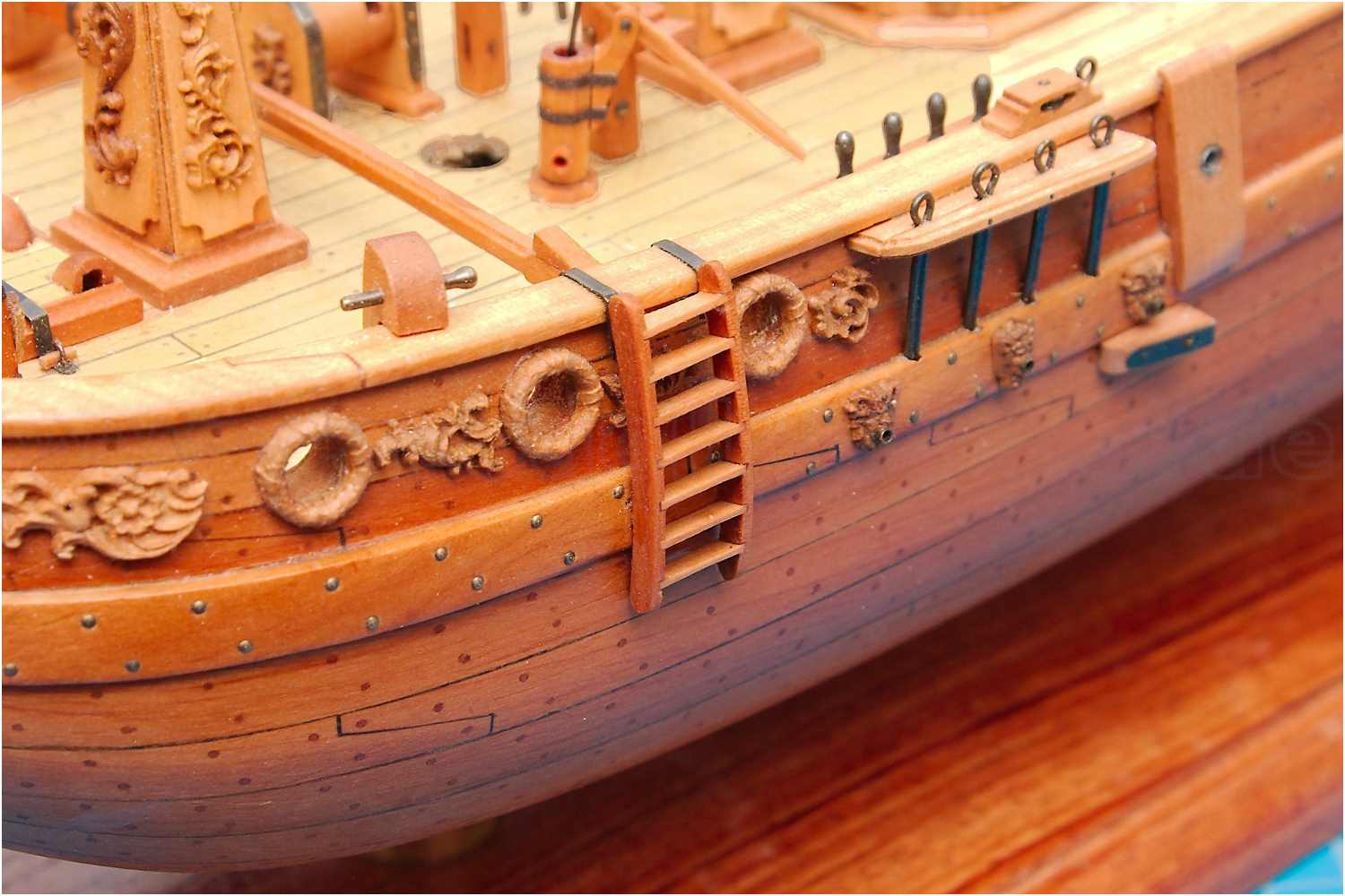 Mit einer abnehmbaren Außentreppe konnte man von einem Boot an Bord umsteigen bzw. in ein Boot einsteigen. Die Treppe ist nach Bauplan nicht vorgesehen und wird nach Informationen aus NJ zusätzlich realisiert.