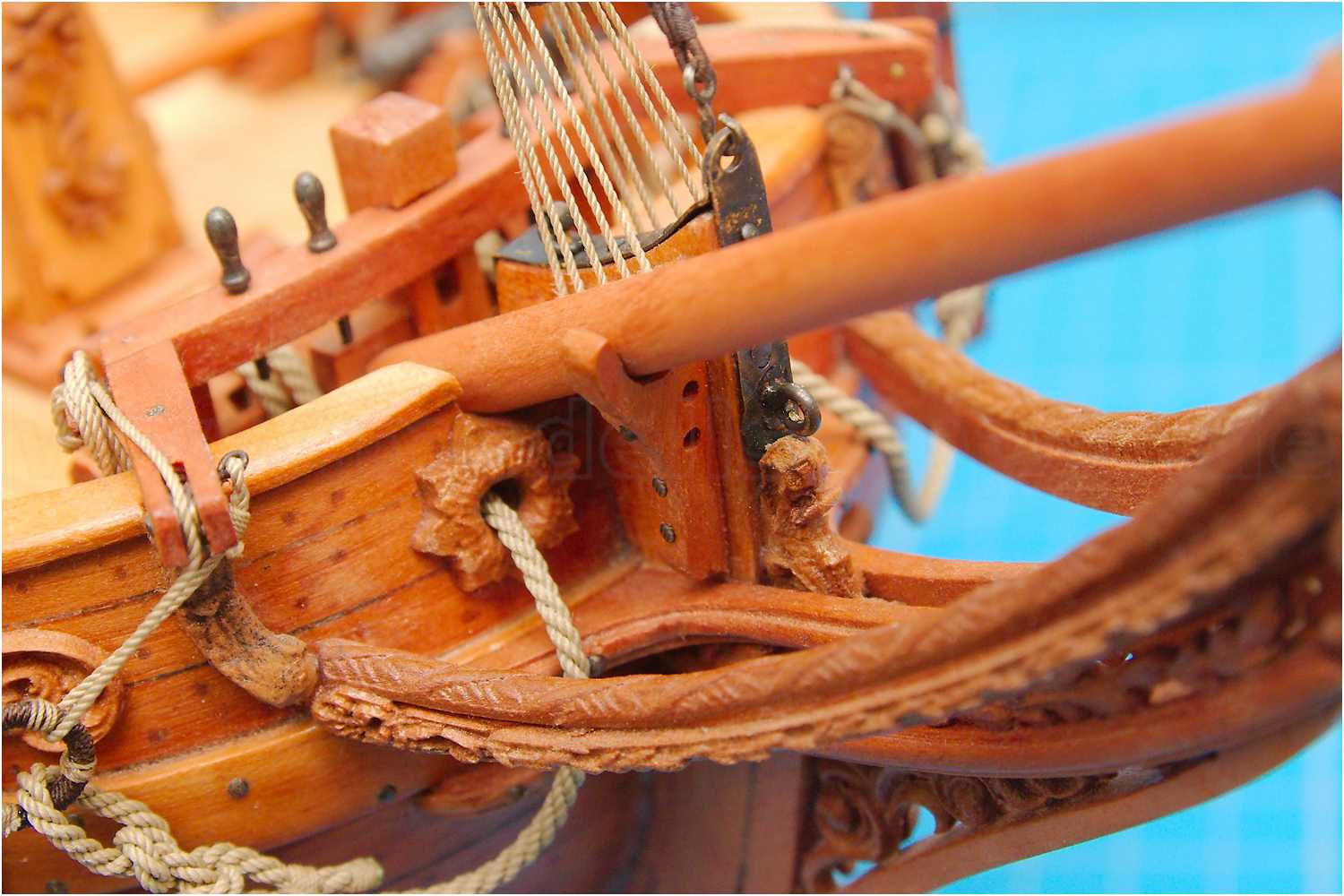 Am Bugspriettopp sind beidseitig jeweils ein Schildpatt für die Toppsegelbuliens angebracht. Diese erhalten profilierte Schmuckkanten.