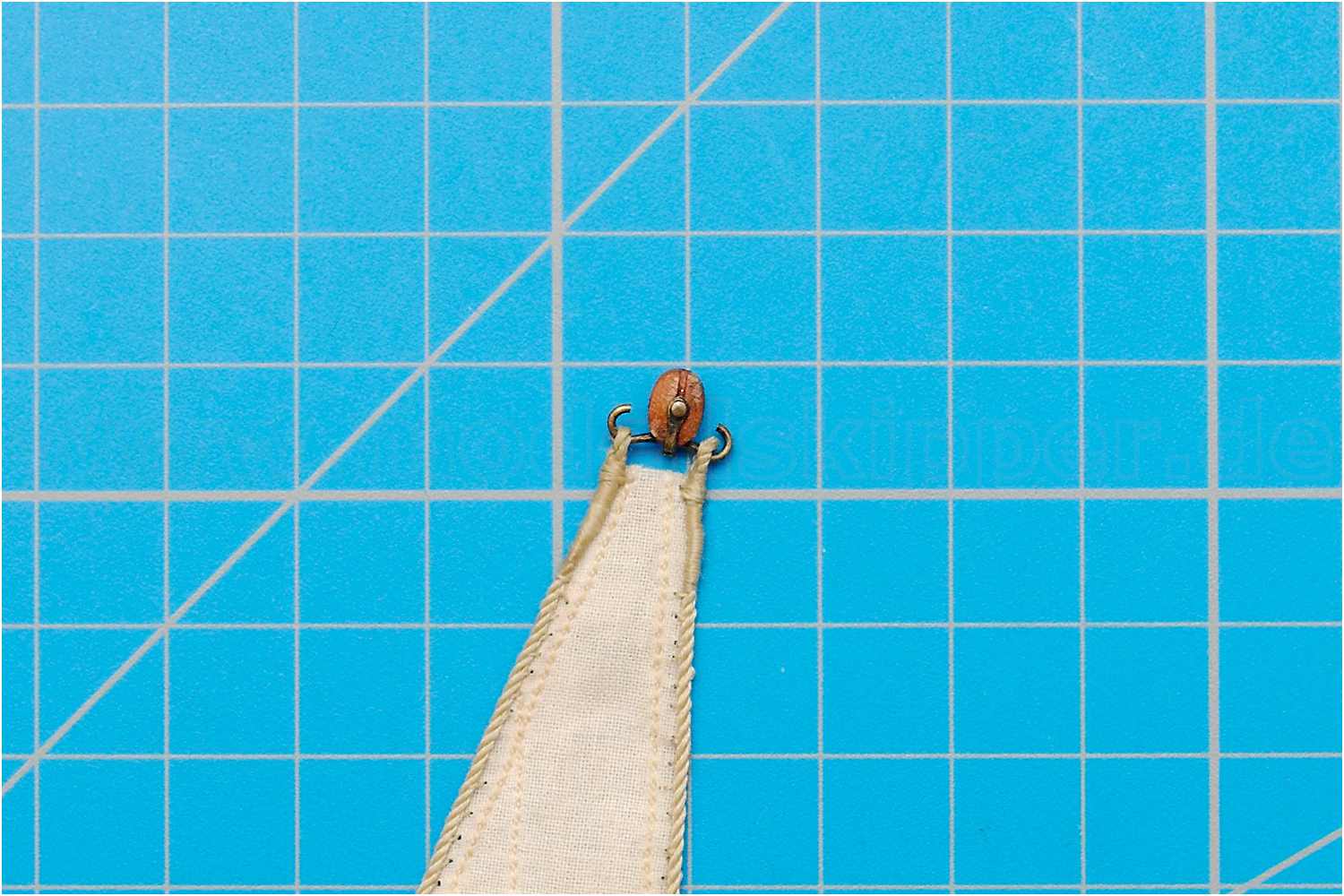 Die Länge des Bändsel wird abgemessen mit Sekundenkleber versiegelt und auf die notwendige Länge gekürzt.