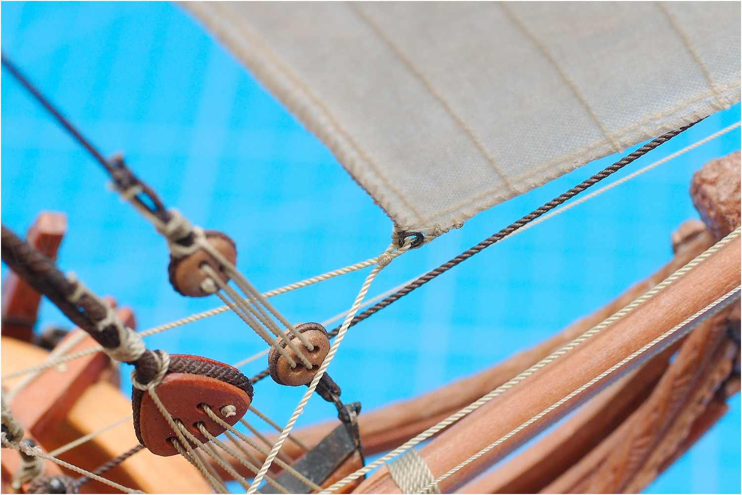 Abschließend wird der Ring mit einem 0,25-mm-Tau bekleidet und auf das Bugspriet gesetzt.