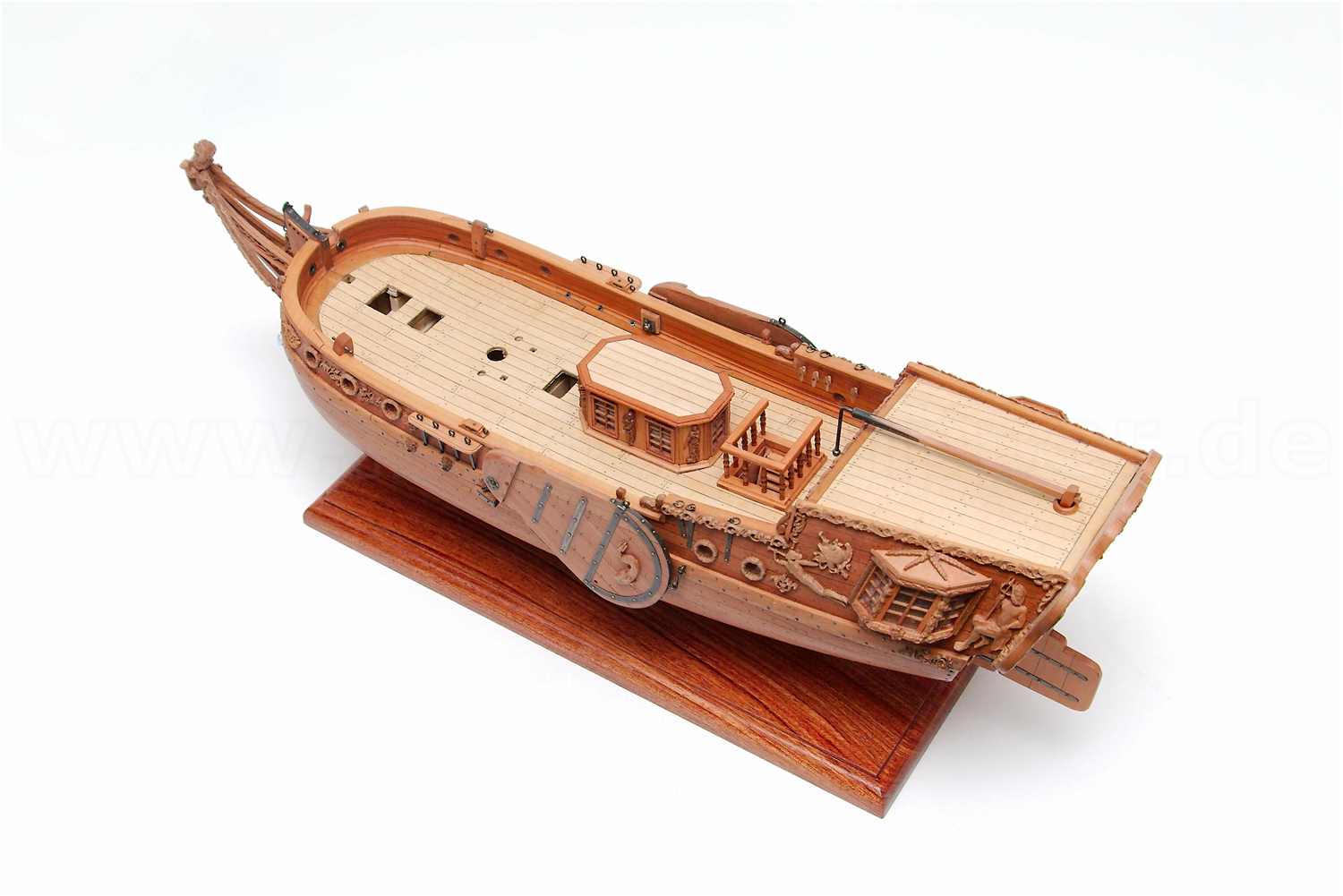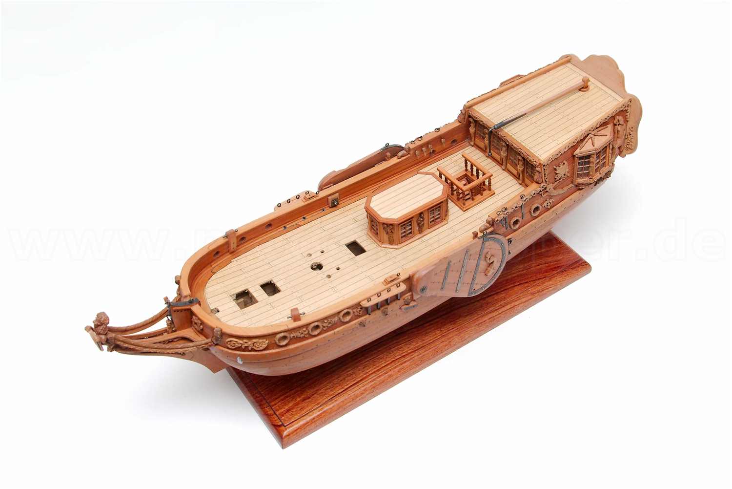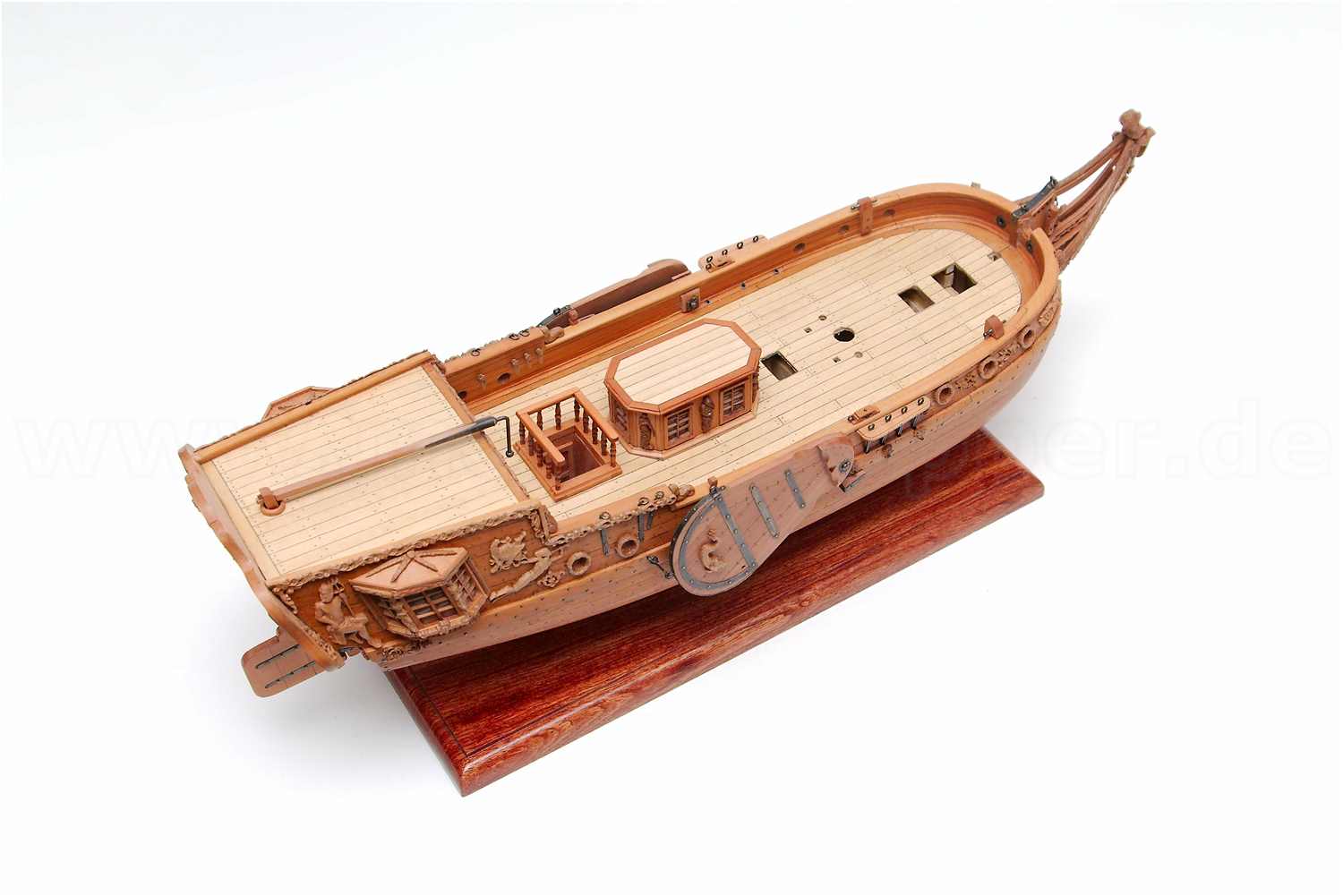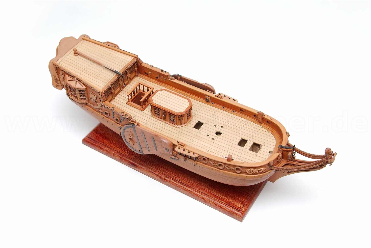 Der Schacht des Niedergangs ist in den Rumpf eingesetzt und das Geländer aufgeklebt.