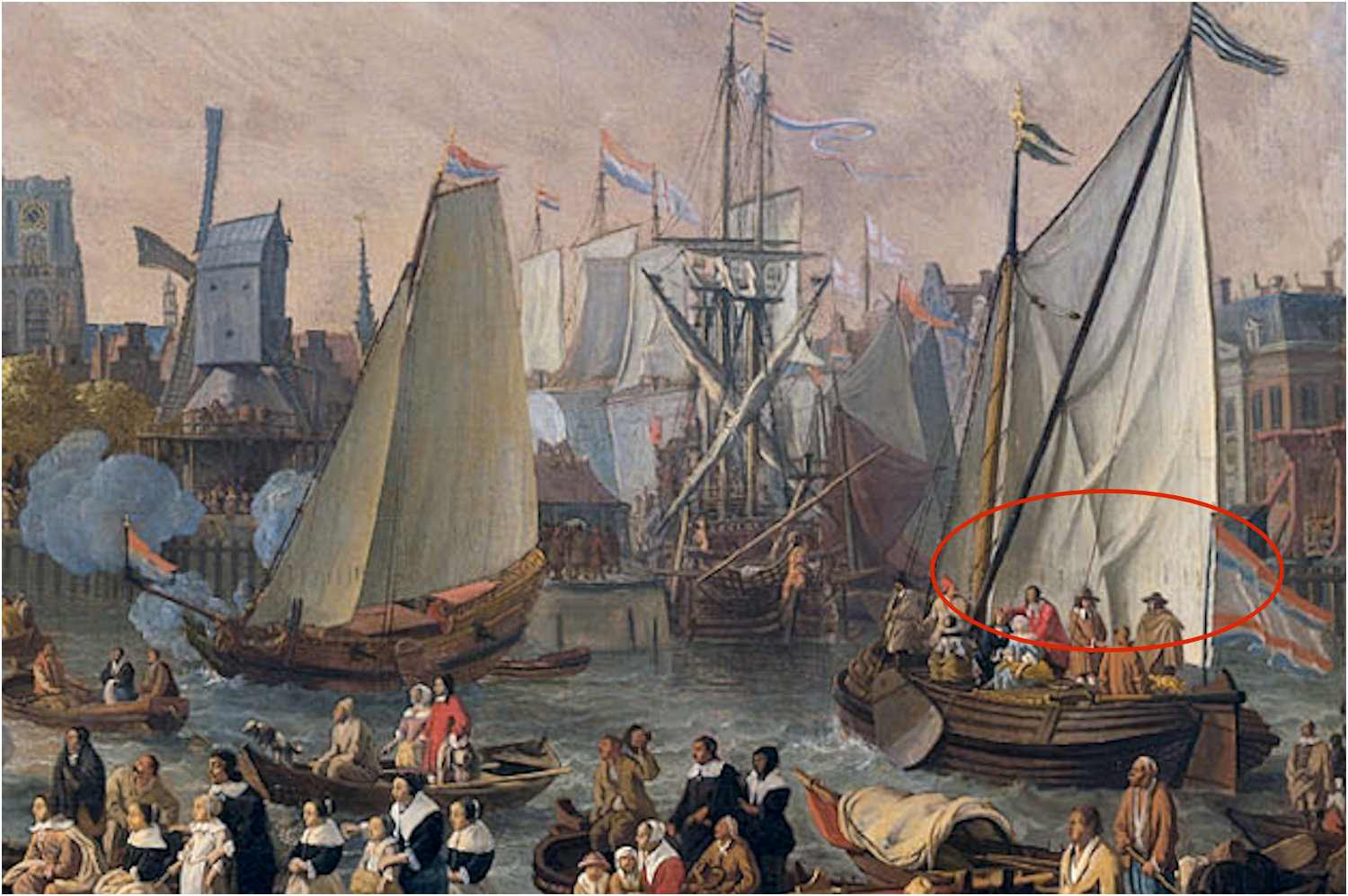 • Ankunft König Charles II von England in Rotterdam, am 24. Mai 1660, Lieve Pietersz (Bild: https://de.m.wikipedia.org/wiki/Datei:The_arrival_of_King_Charles_II_of_England_in_Rotterdam,_may_24_1660_(Lieve_Pietersz._Verschuier,_1665).jpg)