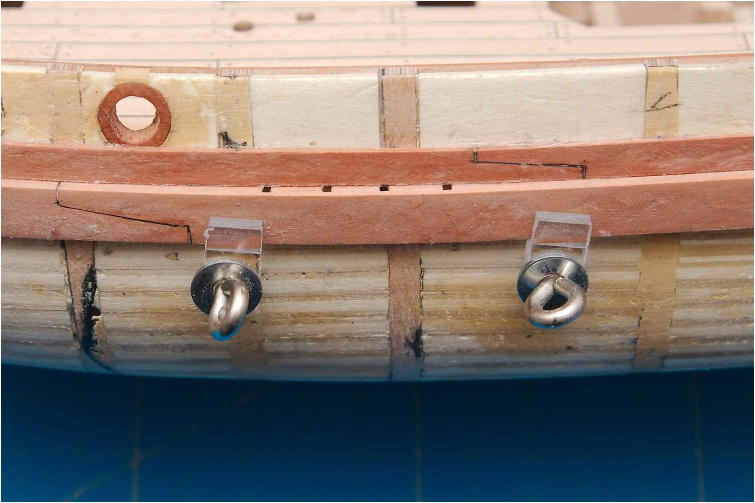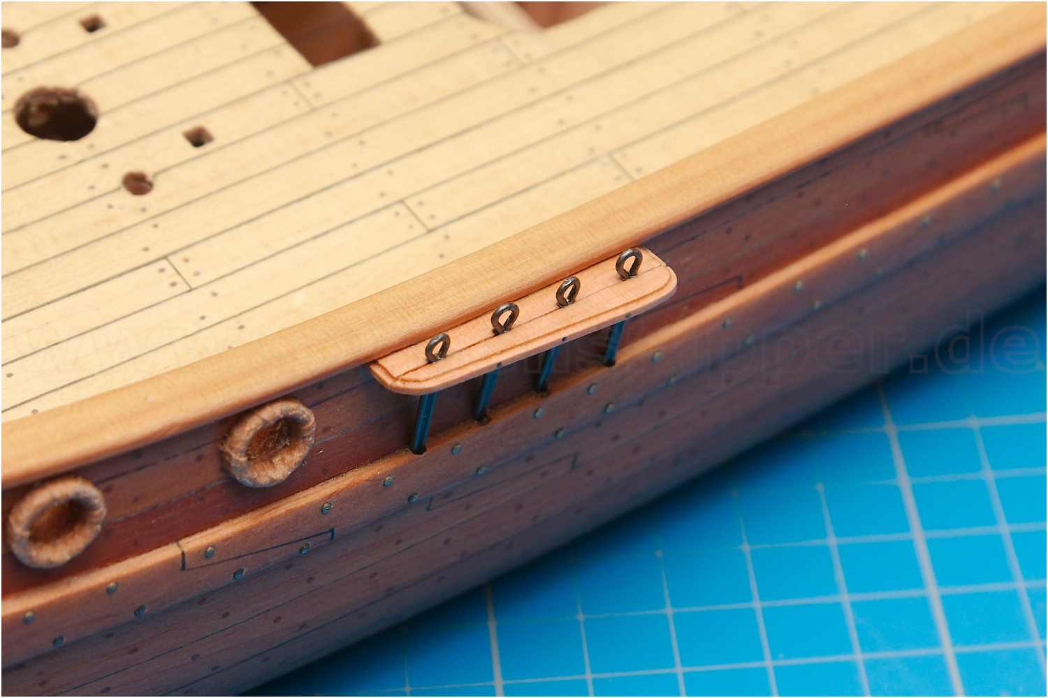 Ich entscheide mich, so wie im Bauplan, die Rüsten unter dem Dollbord anzuordnen.
