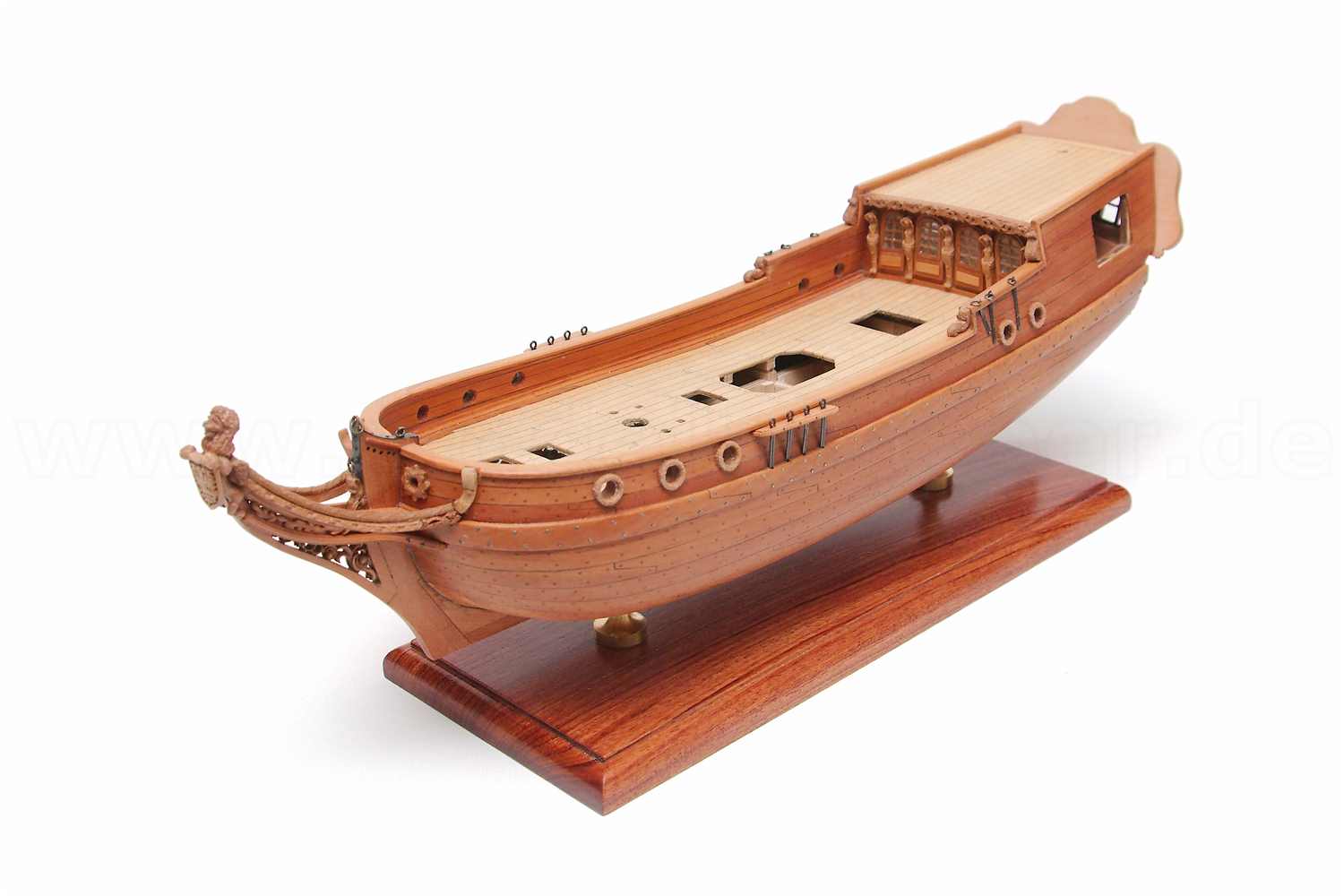 Nach dem Aufsetzen der Abdeckleiste ist von dieser kleinen "Schummelei" nichts mehr zu sehen und die Rüsteisen haben nun genug Halt für den Zug der späteren Wanten.