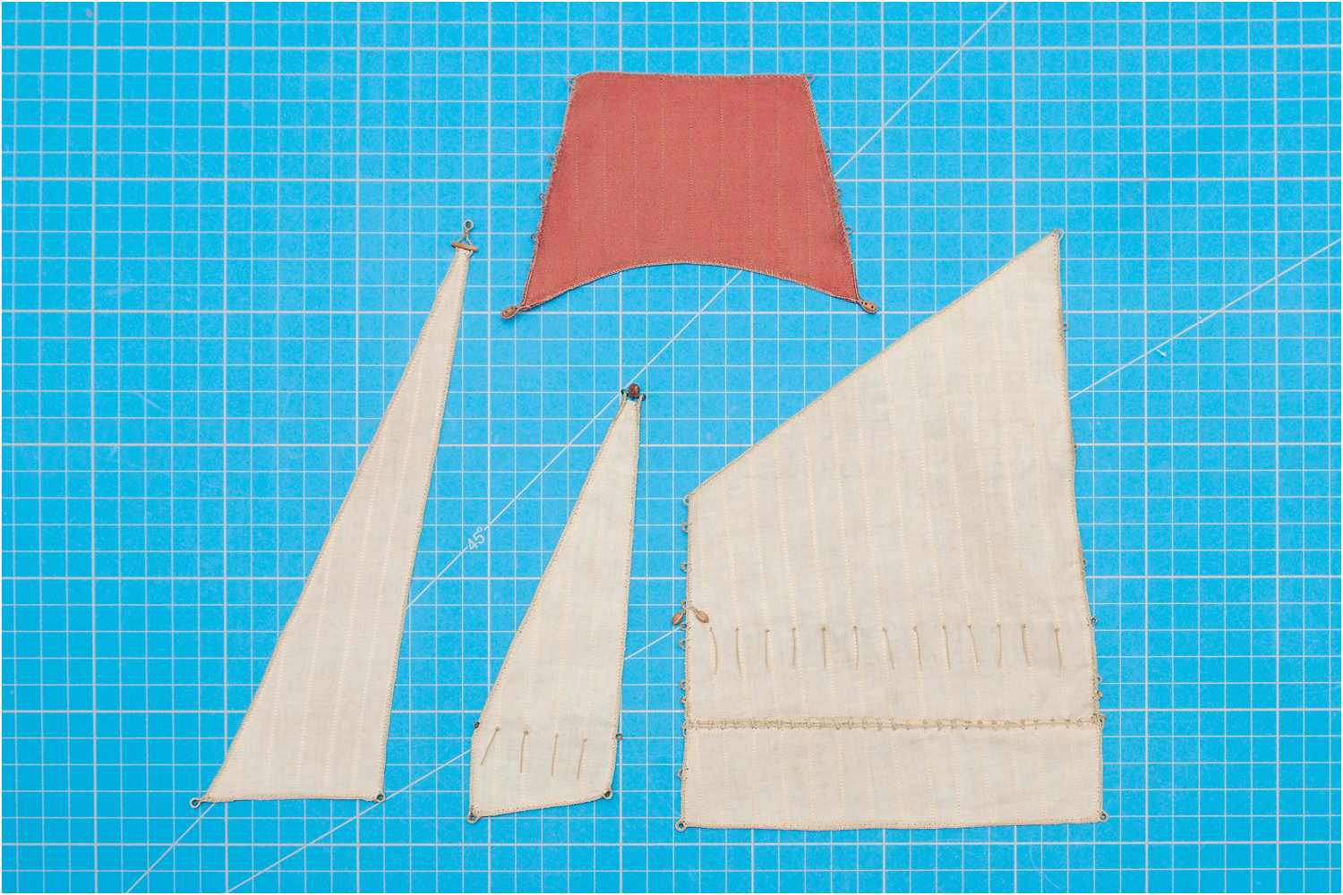 Es ist schwer, einen maßstäblich passenden Stoff für die Segel zu finden.