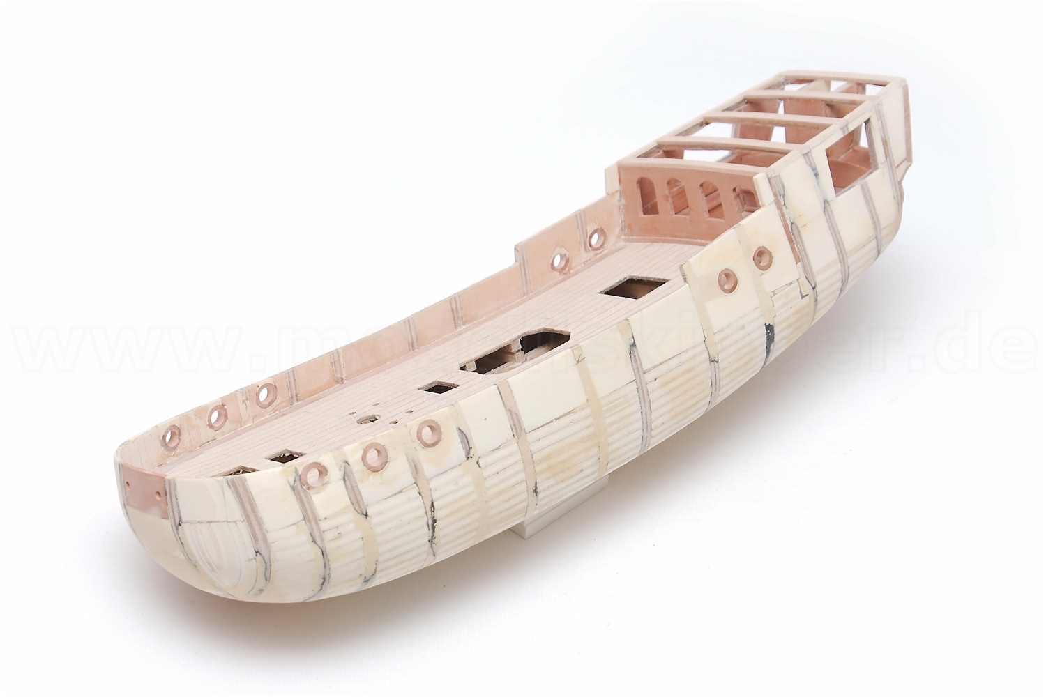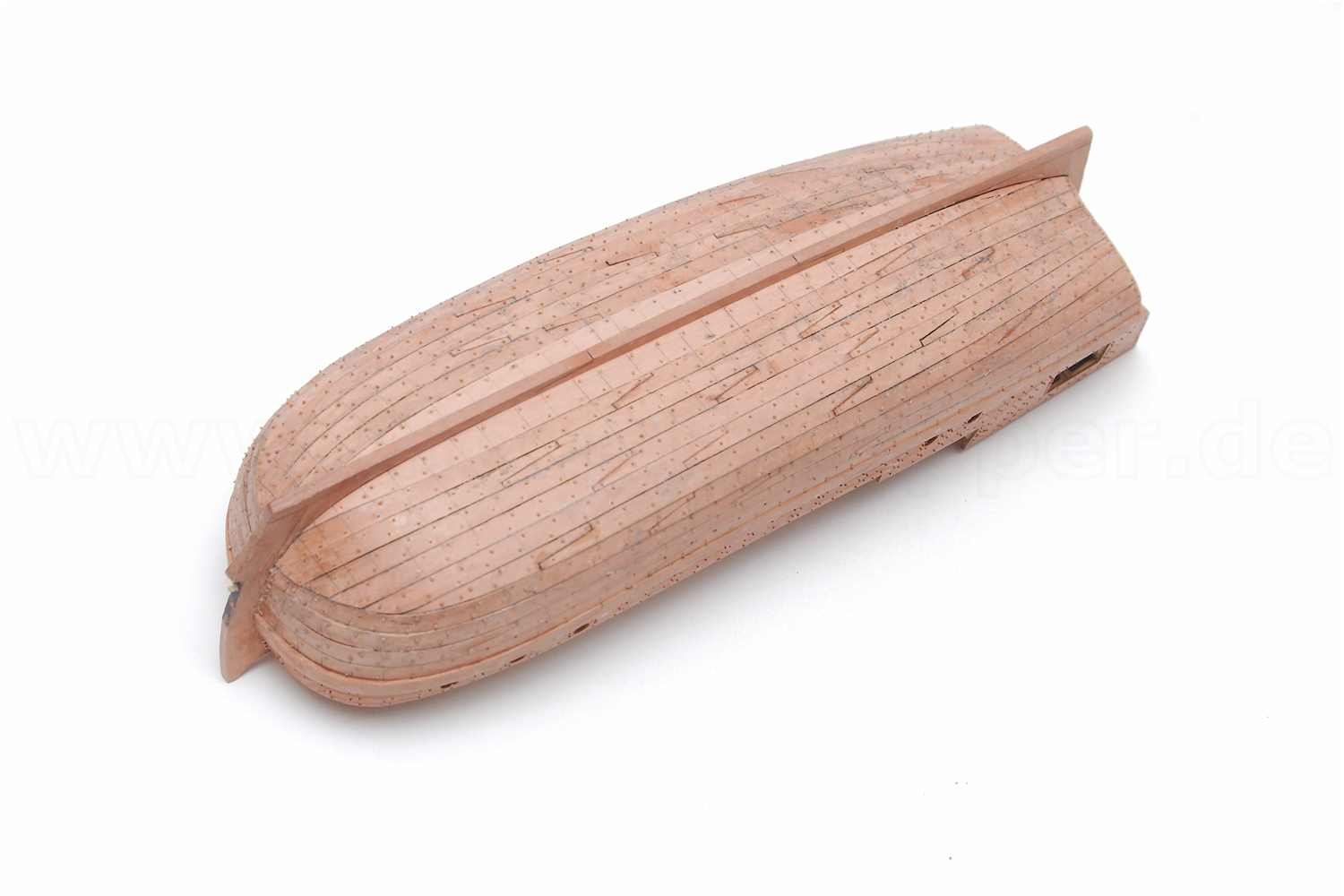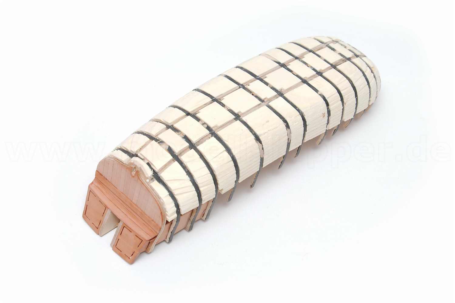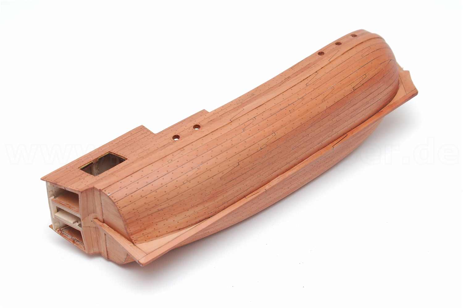 168 Std.: Rumpfkorpus geschliffen, Stückpforten eingesetzt und Erkerfenster ausgeschnitten