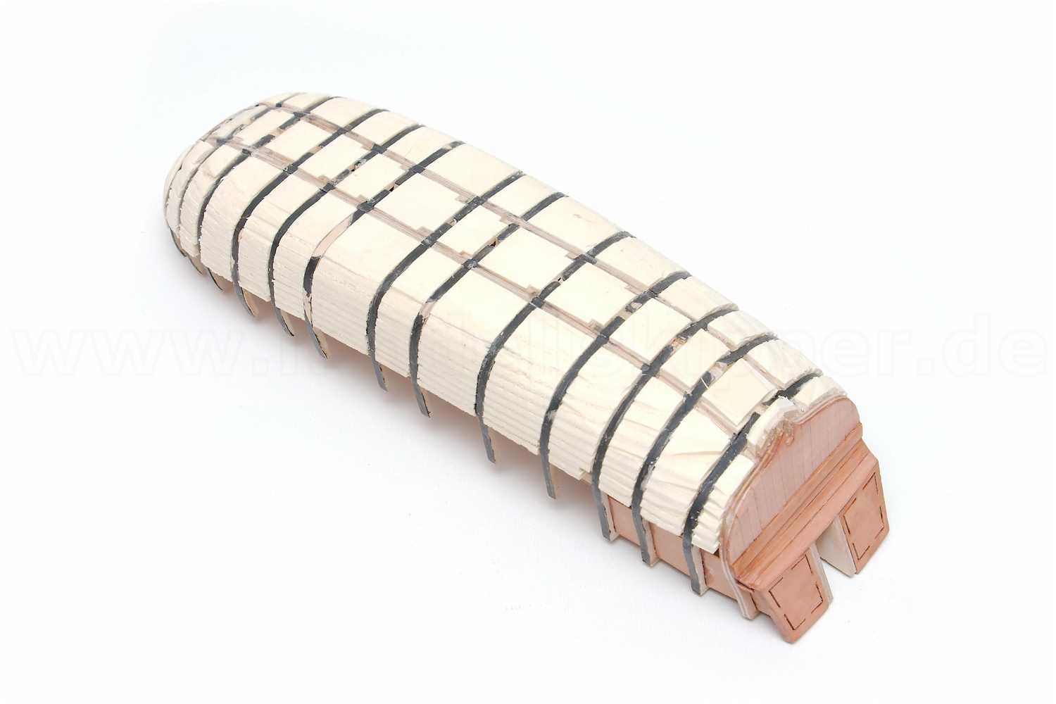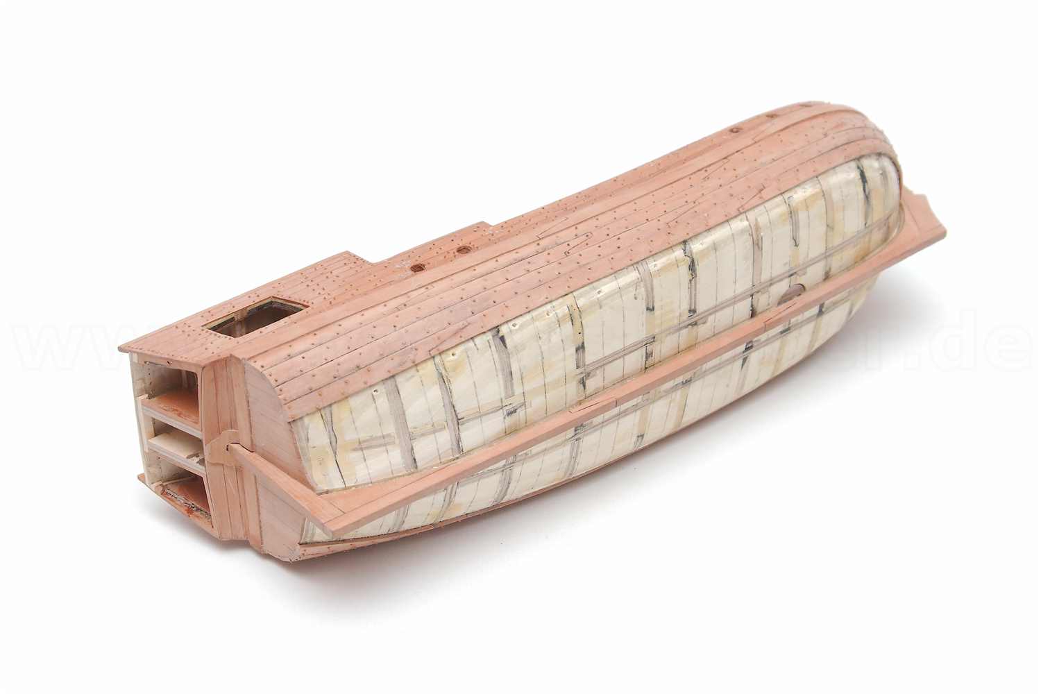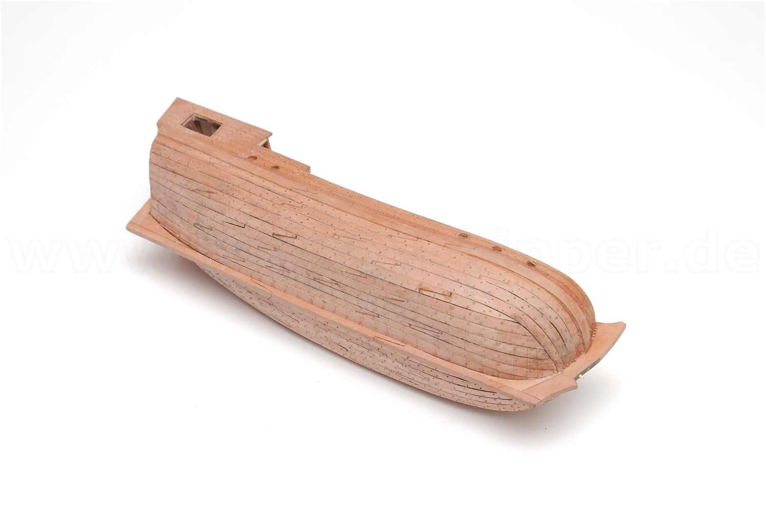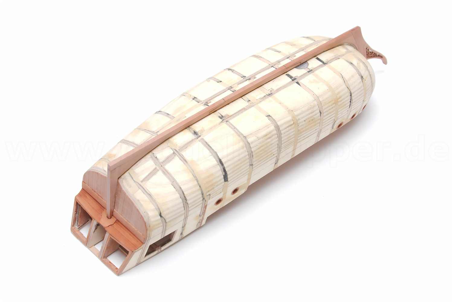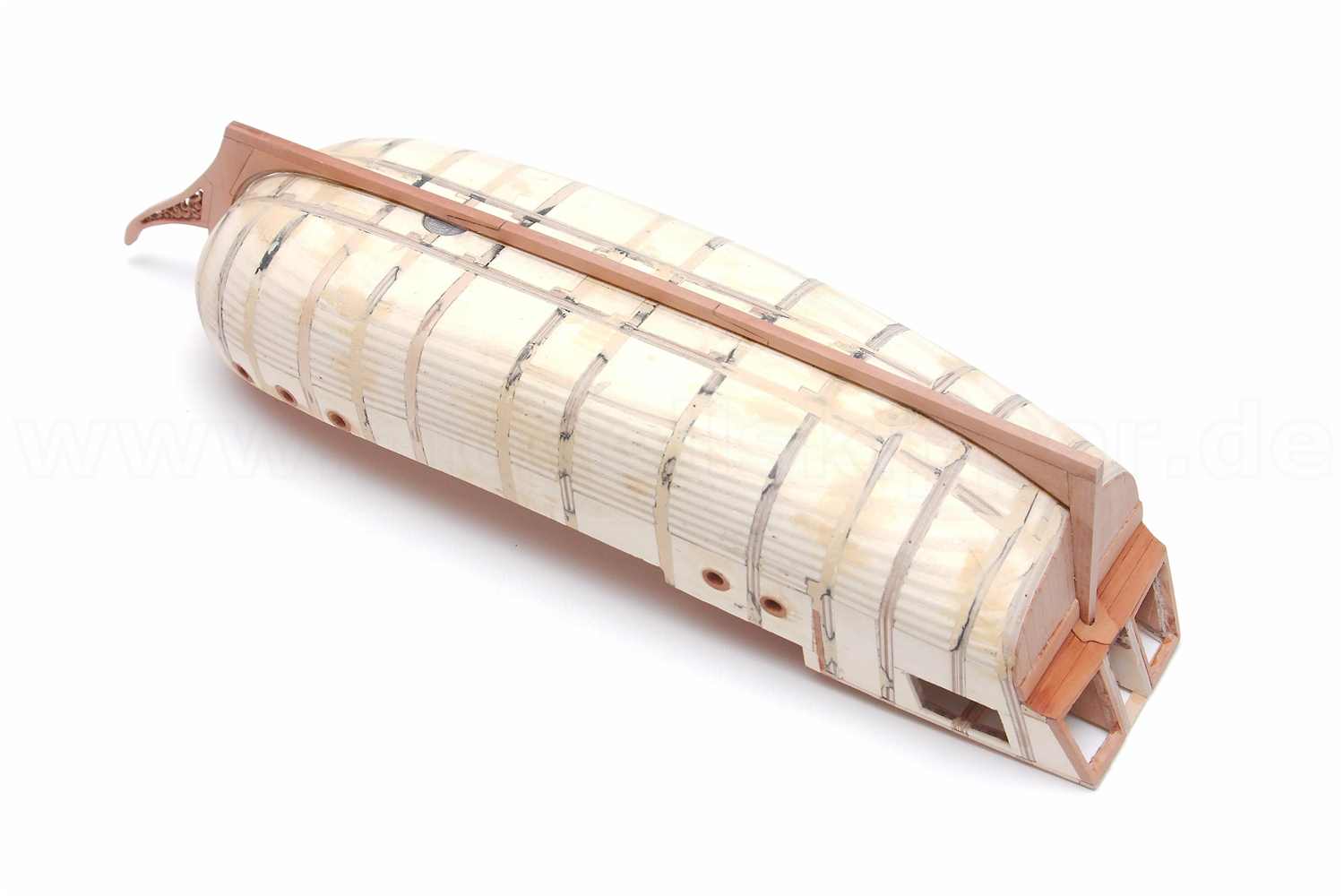 168 Std.: Rumpfkorpus geschliffen, Stückpforten eingesetzt und Erkerfenster ausgeschnitten