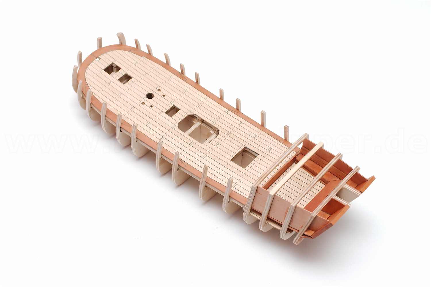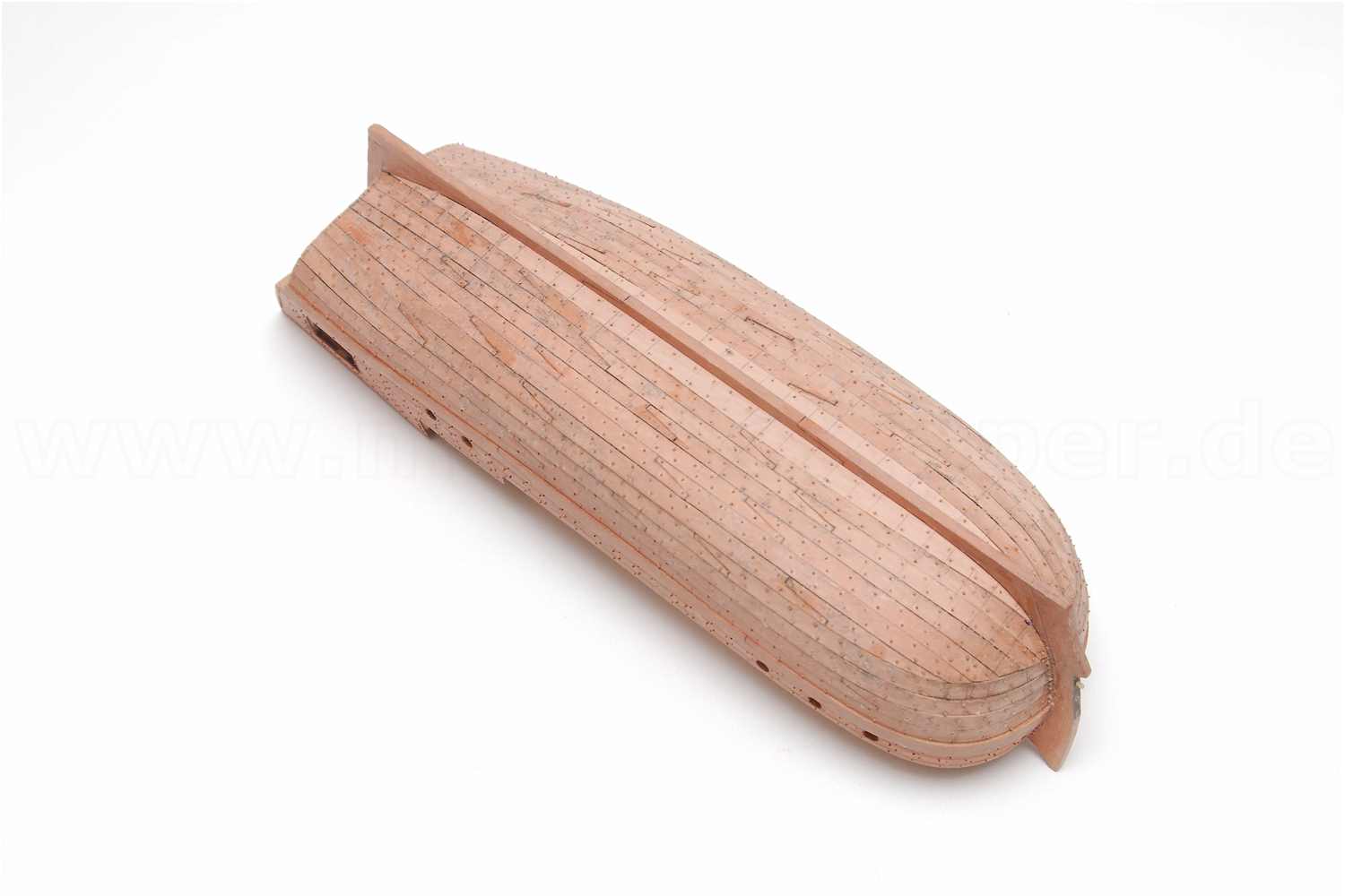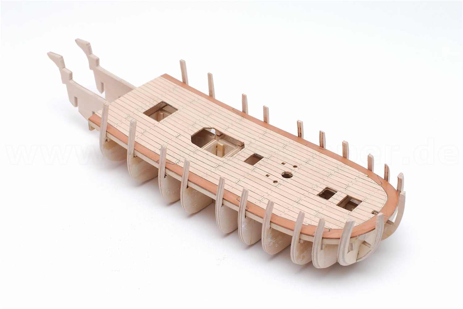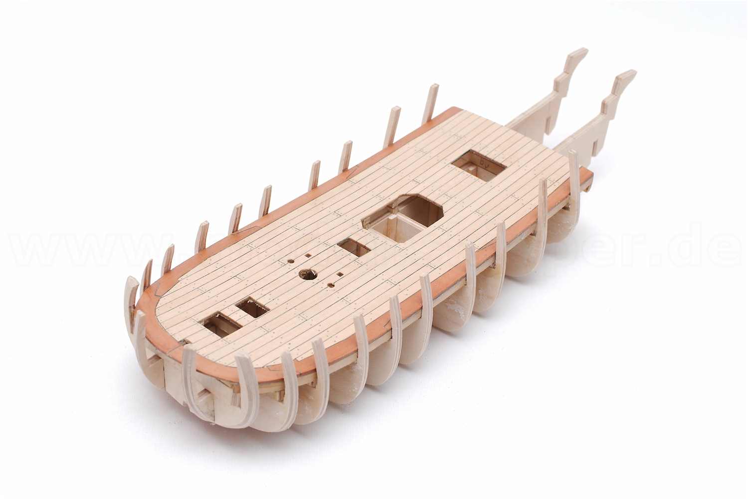 168 Std.: Rumpfkorpus geschliffen, Stückpforten eingesetzt und Erkerfenster ausgeschnitten