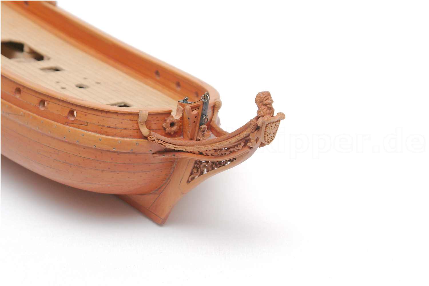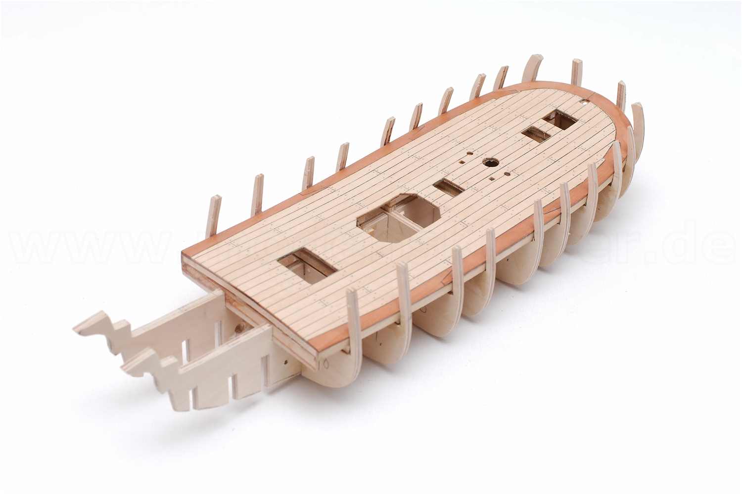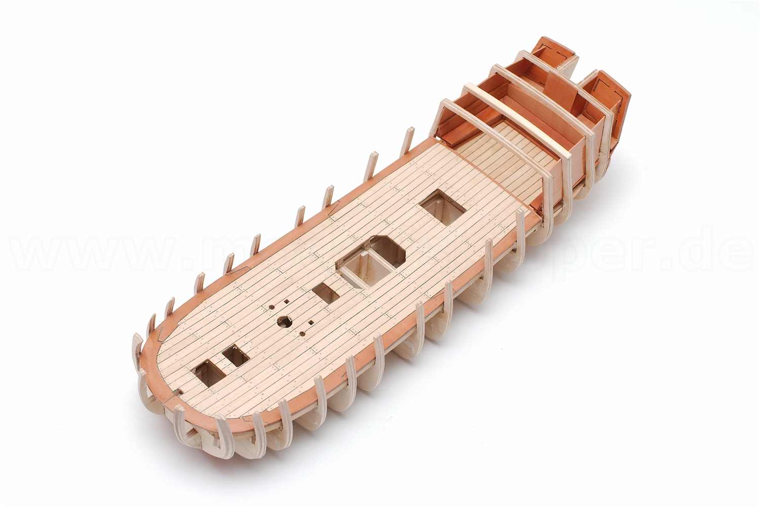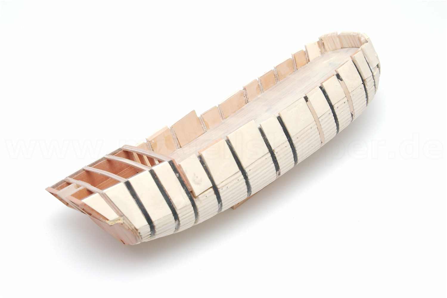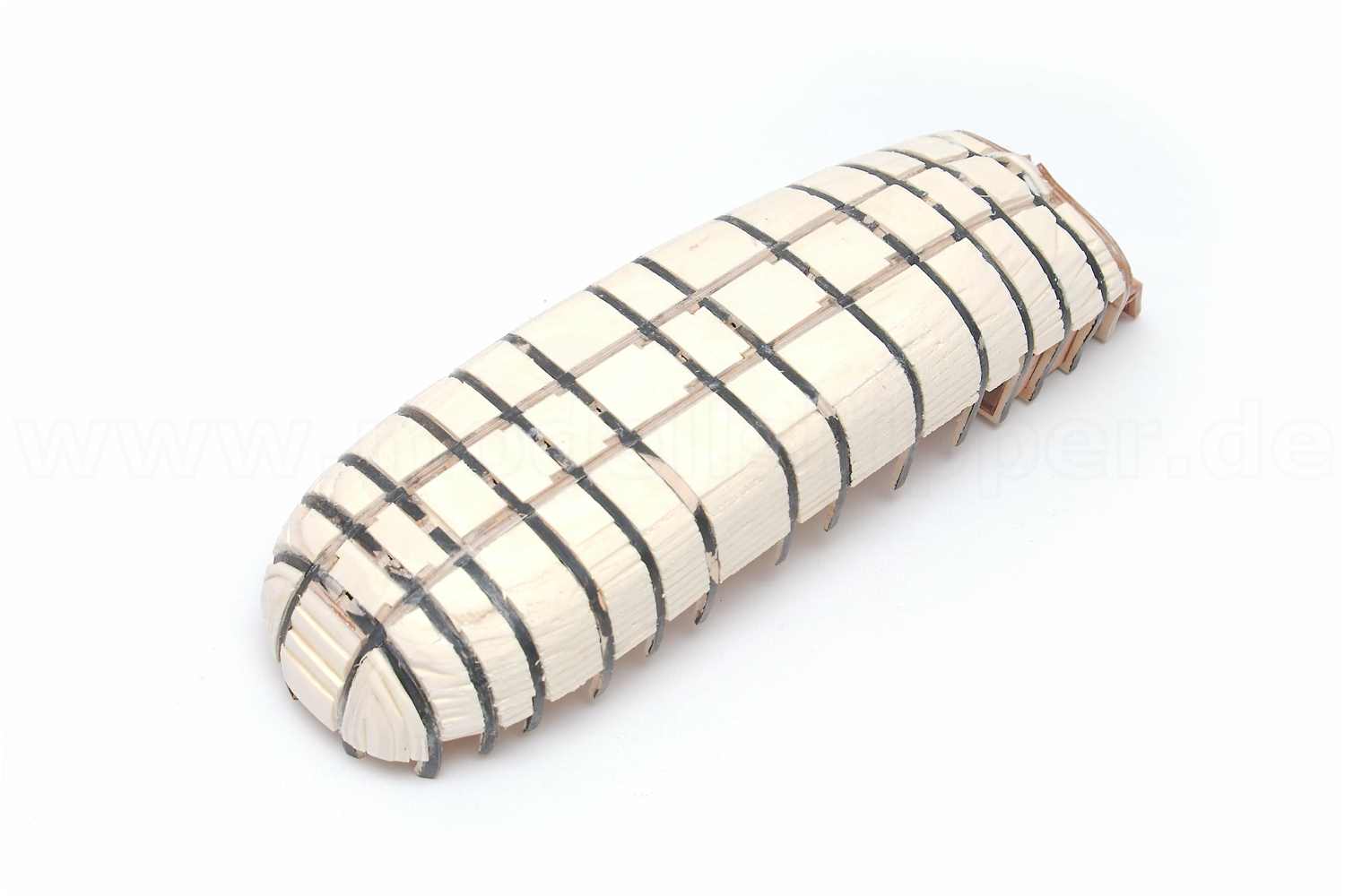 168 Std.: Rumpfkorpus geschliffen, Stückpforten eingesetzt und Erkerfenster ausgeschnitten